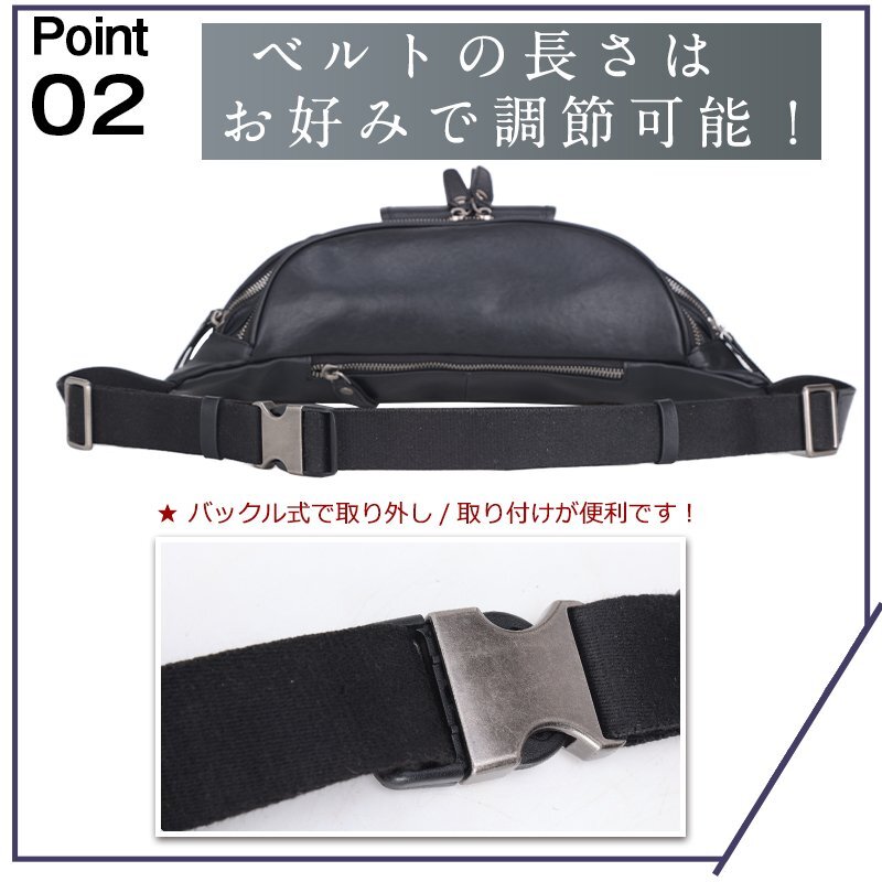 ベルトがバックル式で、鞄を卸す時1秒で簡単実現。そして左右にも長さ調節可能、これでウエストサイズに問わずにどんな体型もウエストバッグに対応する。使うシーンにお応じて気軽くボディ&ウエスト仕様に自在変換できる。