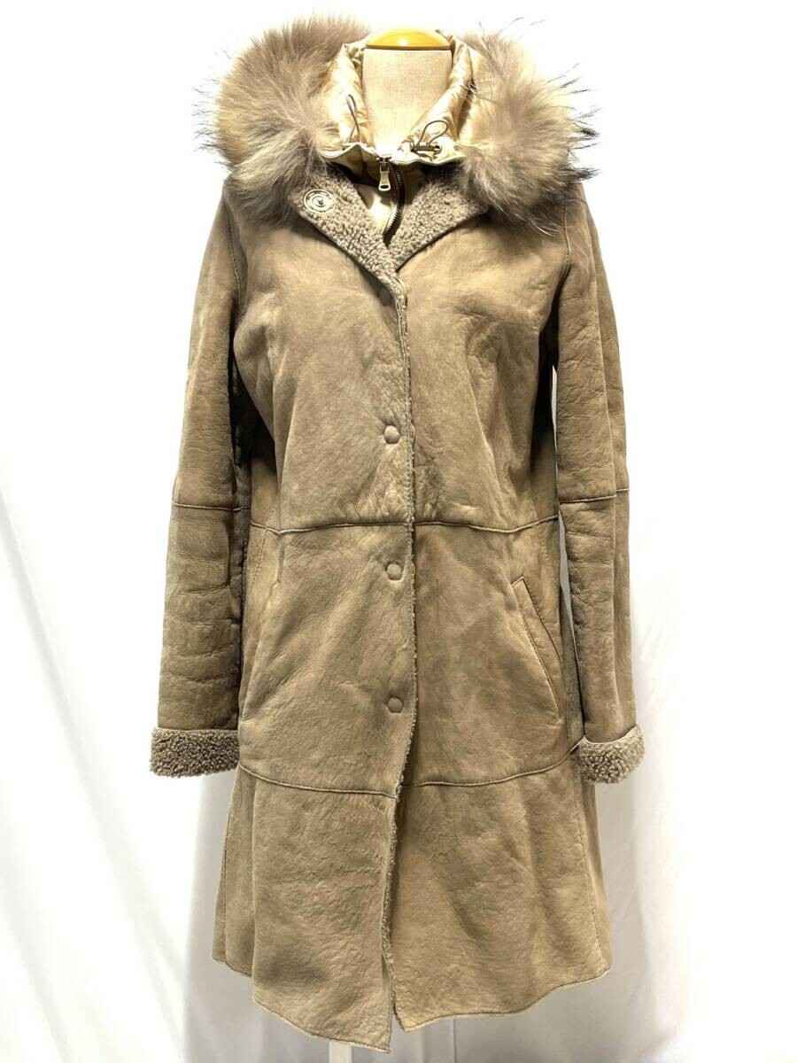 【J816】正規品 DOLCE&GABBANA D&G ドルガバ ムートン ロングコート レディース サイズ40 フード付き ファー ブラウン系 | ||
