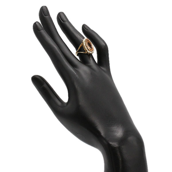 美しいカッティングが施されたインペリアルトパーズと煌めきの美しいダイヤモンドをセッティングした特別感あふれるリングです。フォーマルなシーンはもちろん、シンプルながら存在感のあるデザインなのでカジュアルコーデのワンポイントにもおススメなアイテムです♪