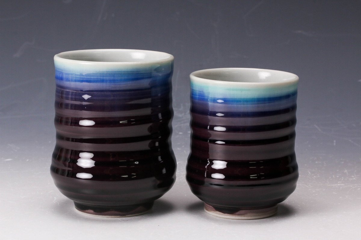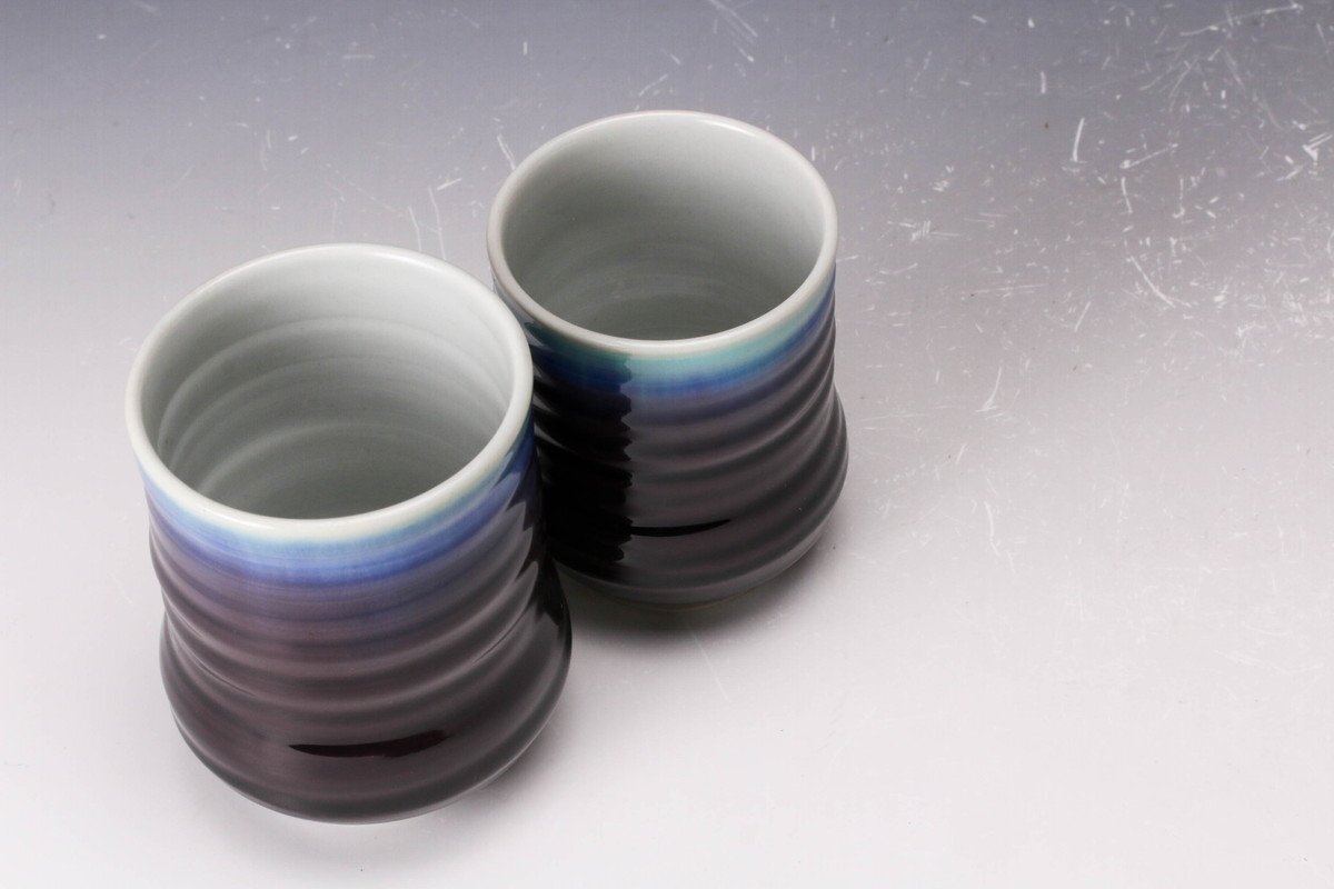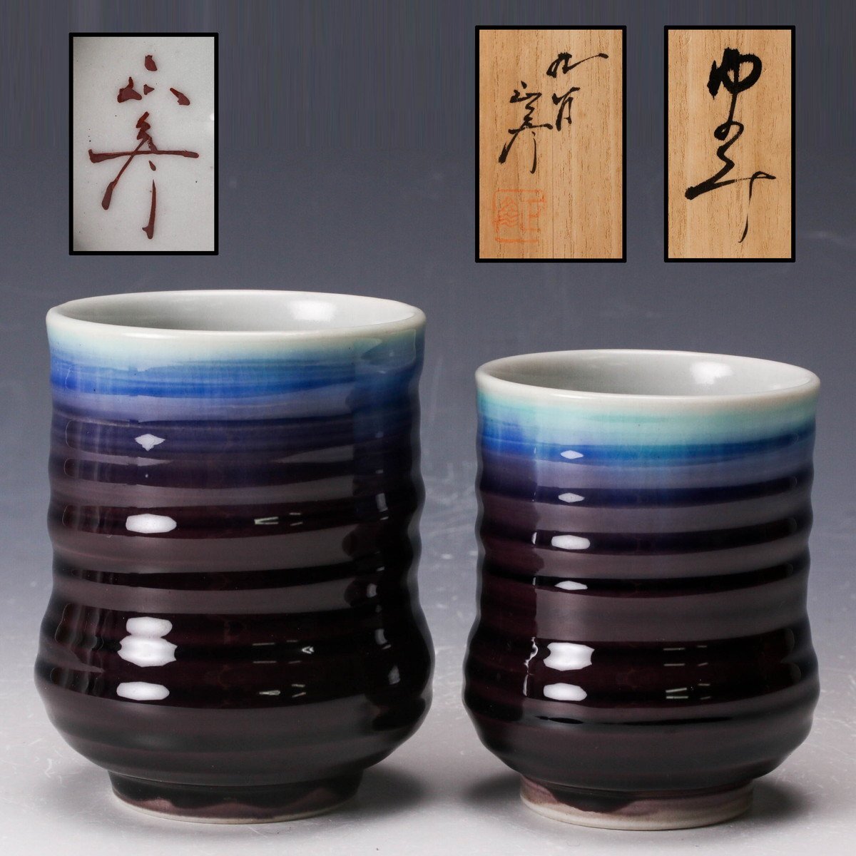 【佳香】人間国宝 三代 徳田八十吉(正彦) 夫婦湯呑 一対 共箱 栞 本物保証