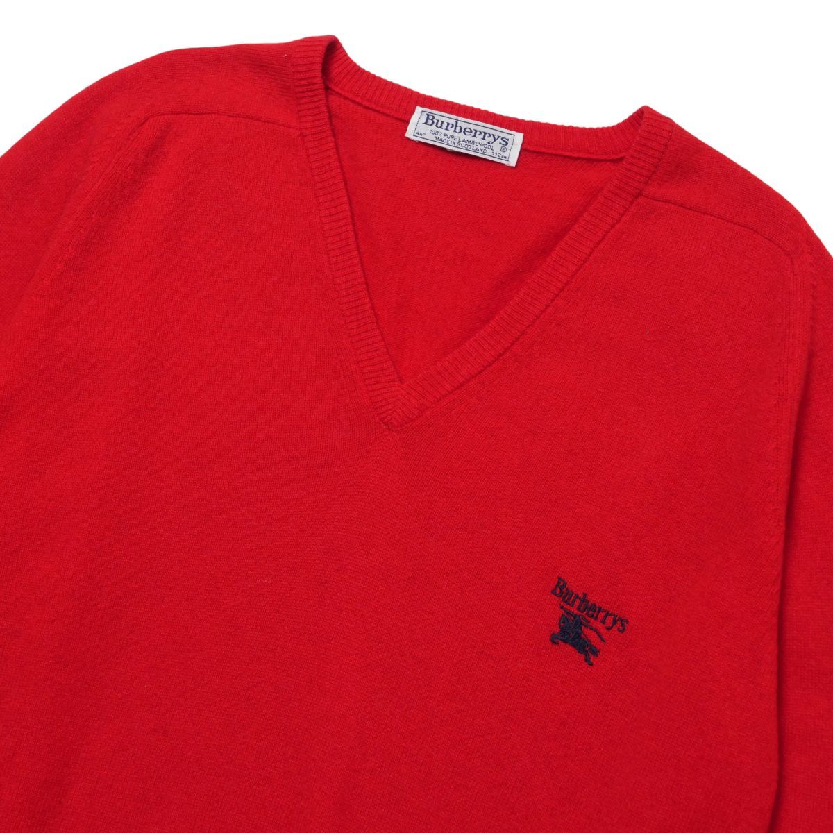 | TI9160+90s*ヴィンテージ*スコットランド製*Burberrys/バーバリー*メンズ44”/112cm*Vネック*ラムウールニットセーター*ロゴ刺繍*レッド系 | |||