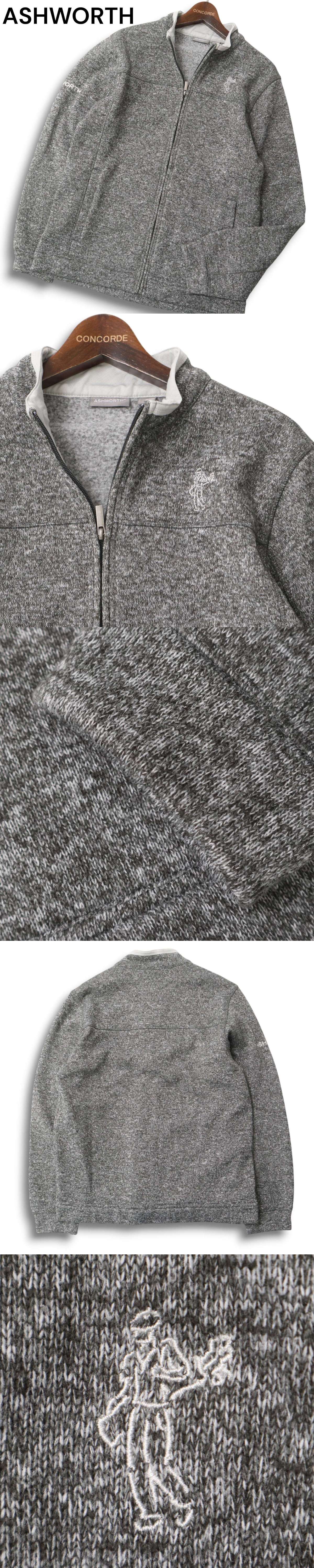 ASHWORTH アシュワース ゴルフ 秋冬 裏起毛★ ニット ジャケット ブルゾン Sz.O メンズ 灰 グレー 大きいサイズ