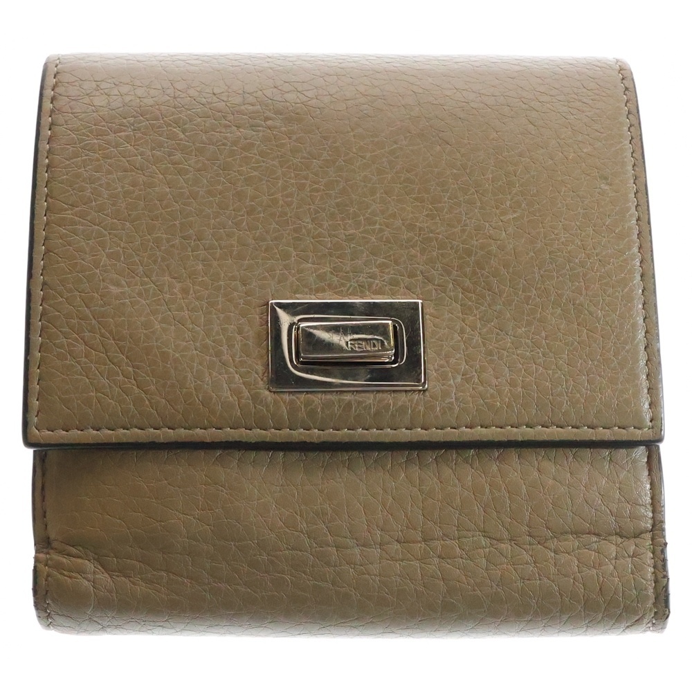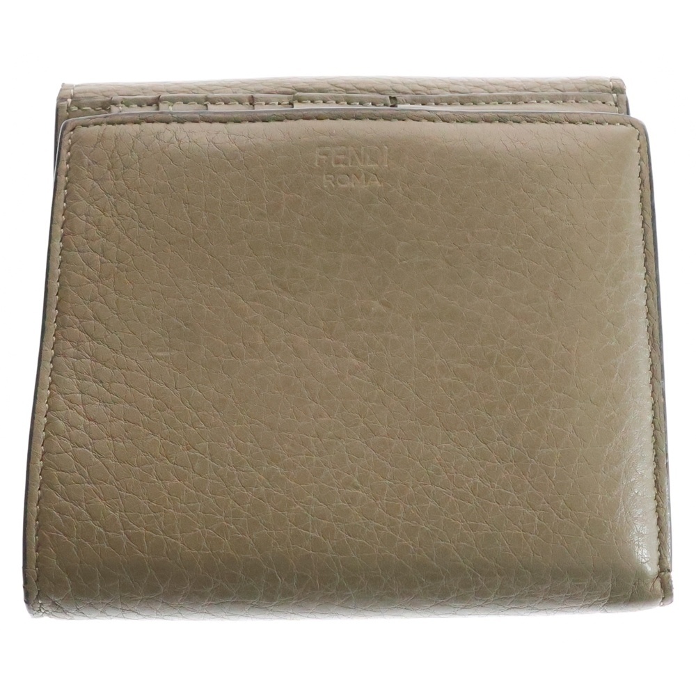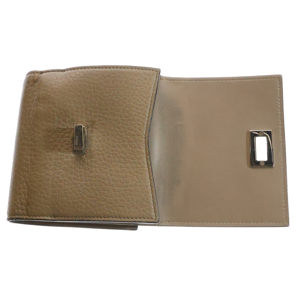 FENDI フェンディ ピーカブー 三つ折り財布 コンパクトウォレット コインケース シルバー金具 ベージュ レザー