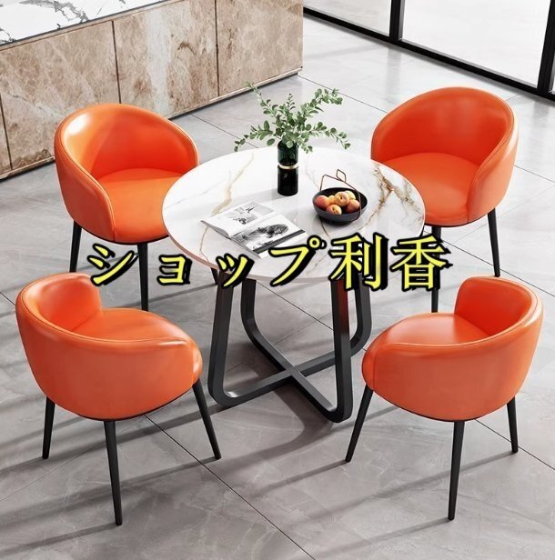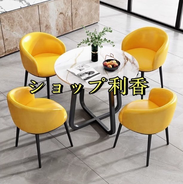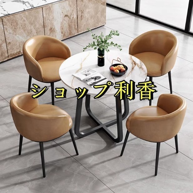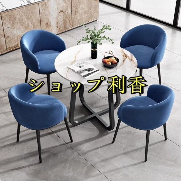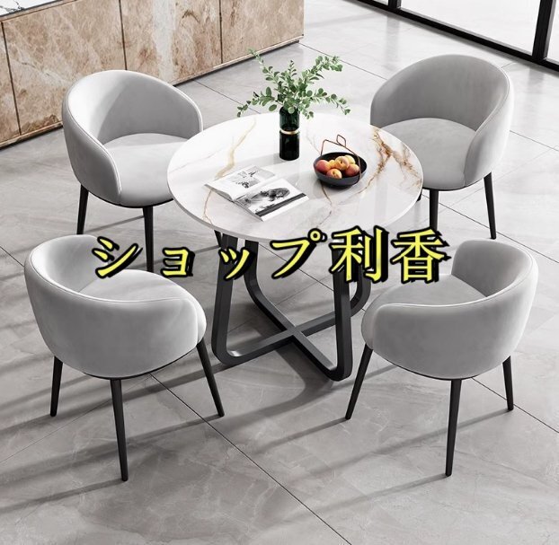 北欧風 会議用テーブル 丸型 コーヒーテーブル リビング テーブル 大理石 柄 4点セット ダイニングチェア