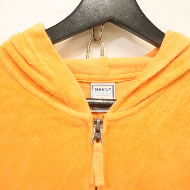 商品名 M895 2004年製ビンテージ OLDNAVY コットンパーカー■00s 表記Lサイズ レディース オレンジ フルジップ パイル生地 フーディー 無地 古着