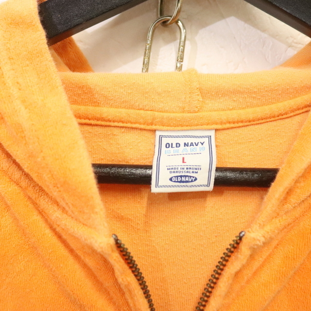 M895 2004年製ビンテージ OLDNAVY コットンパーカー■00s 表記Lサイズ レディース オレンジ フルジップ パイル生地 フーディー 無地 古着