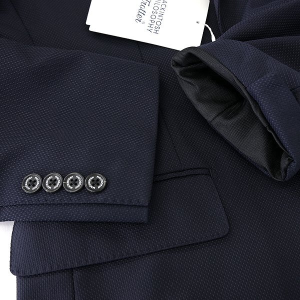 ビジネスマンが出張を快適に過ごすためのアイテムである【TROTTER(トロッター)】シリーズは、MACKINTOSH PHILOSOPHYならではのファンクションへのアプローチを本格志向のものづくりに融合させたコレクションです。 快適な機能性を持つトロッターシリーズの定番モデル「#000(ナンバーゼロ)」。 先染めポリエステル(フィラメント)を使用しており、凹凸感のあるバーズアイ組織で絶妙な光沢感のある素材です。 真冬以外の3シーズンお使いいただける素材で、シワになりにくくご自宅の洗濯機で洗うことができます。 内仕様は大見返しの背抜き仕立てで、左右に内ポケットが付き、袖裏はメッシュ素材を使用しています。 ビジネスシーンはもちろん、出張やトラベルシーン、きれいめカジュアルにも重宝するアイテムです。 【デザイン】 ・大見返し仕立て(背上と袖に裏地あり) ・フロントは2つボタン ・サイドベンツ ・袖先は4つボタン(開き見せ) |