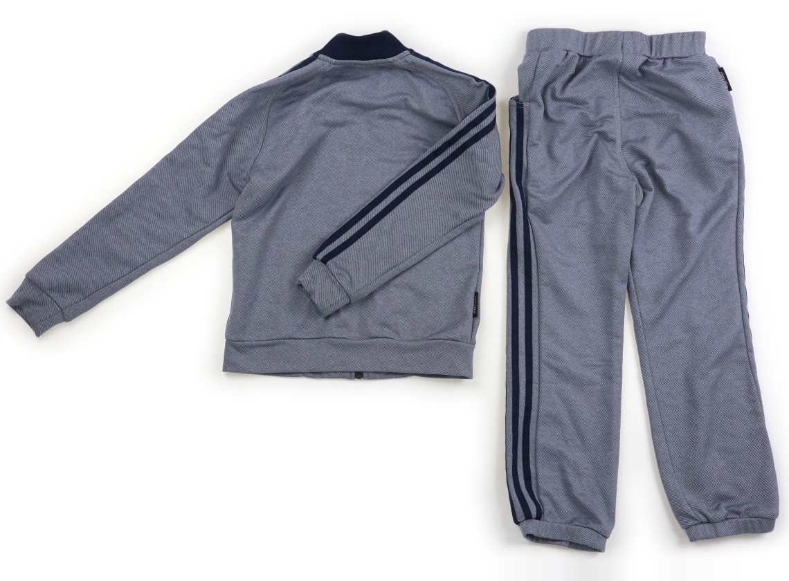 ポリエテル製、裏は微起毛です。ウエストは総ゴムで調節ひも付き。全体に毛羽立ちとやや色褪せ、両膝に目立つシミ汚れが見受けられます。
