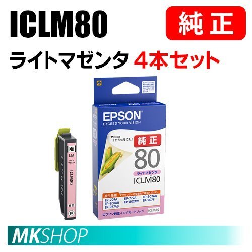 EPSON 純正 インクカートリッジ ICLM80 ライトマゼンタ 4本セット(EP-808AR/808AW/907F/977A3/978A3/979A3/982A3)