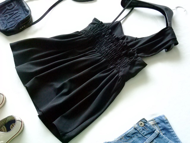 訳あり★大人素敵★人気★ストライプふんわりキャミブラウス★チューブトップ★M黒ブラックストレッチ重ね背中ゴム★ | |||||