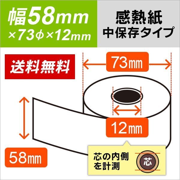 送料無料 感熱ロール紙 中保存タイプ 58×73×12 (10巻入)