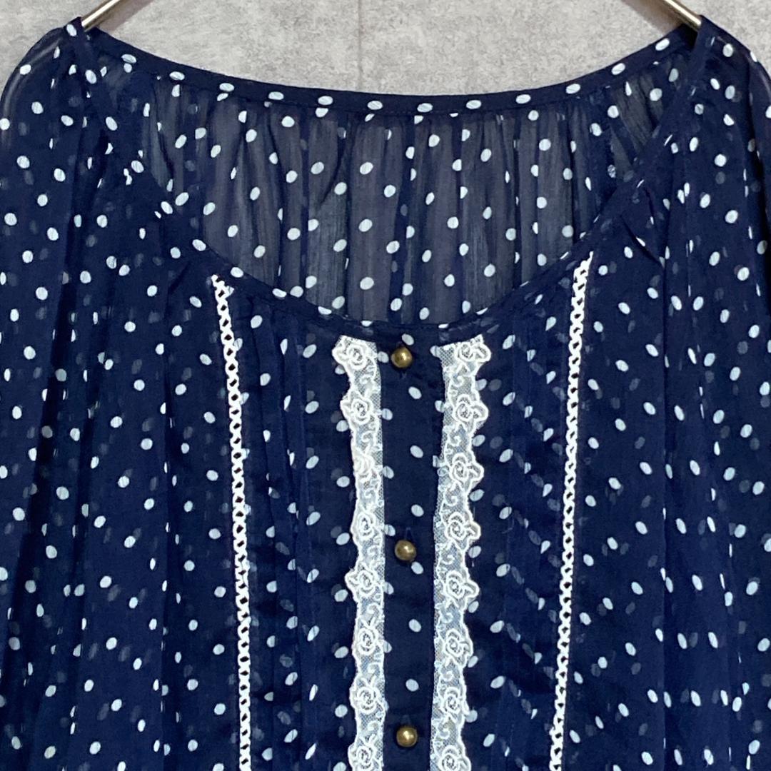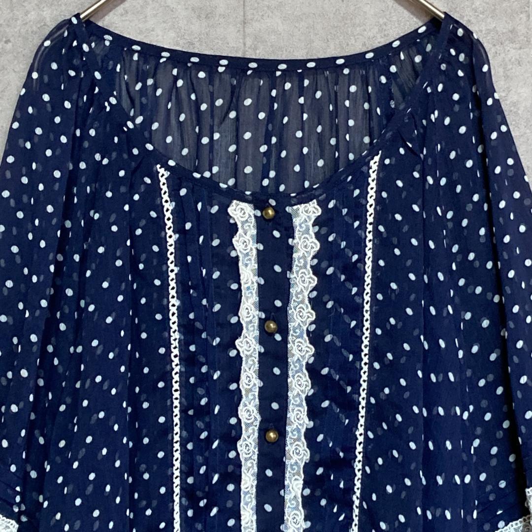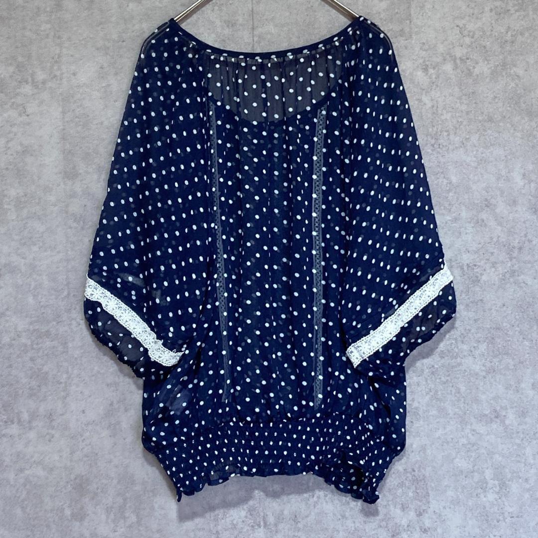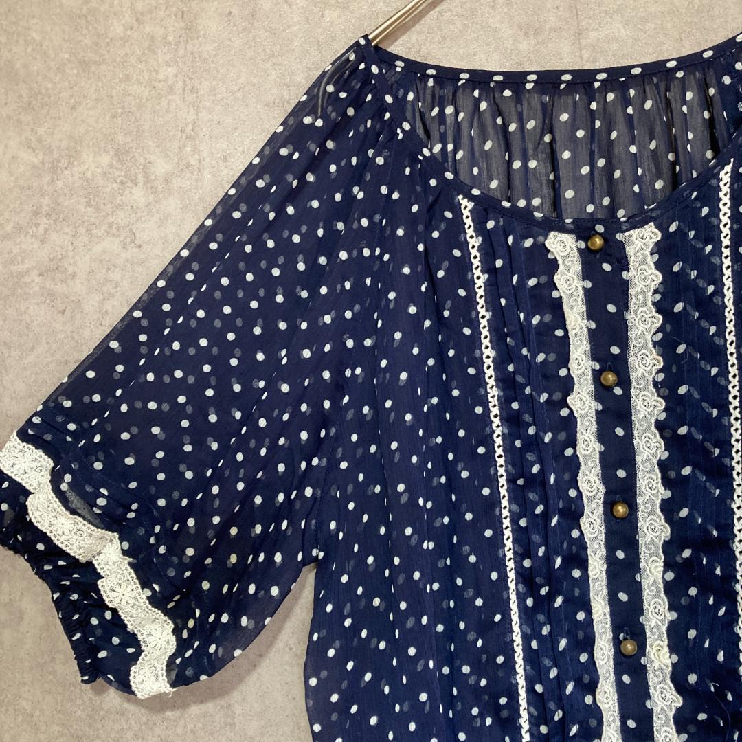 【美品】パハリート(M)シフォン五分袖ブラウス*ドット柄*総柄*Uネック