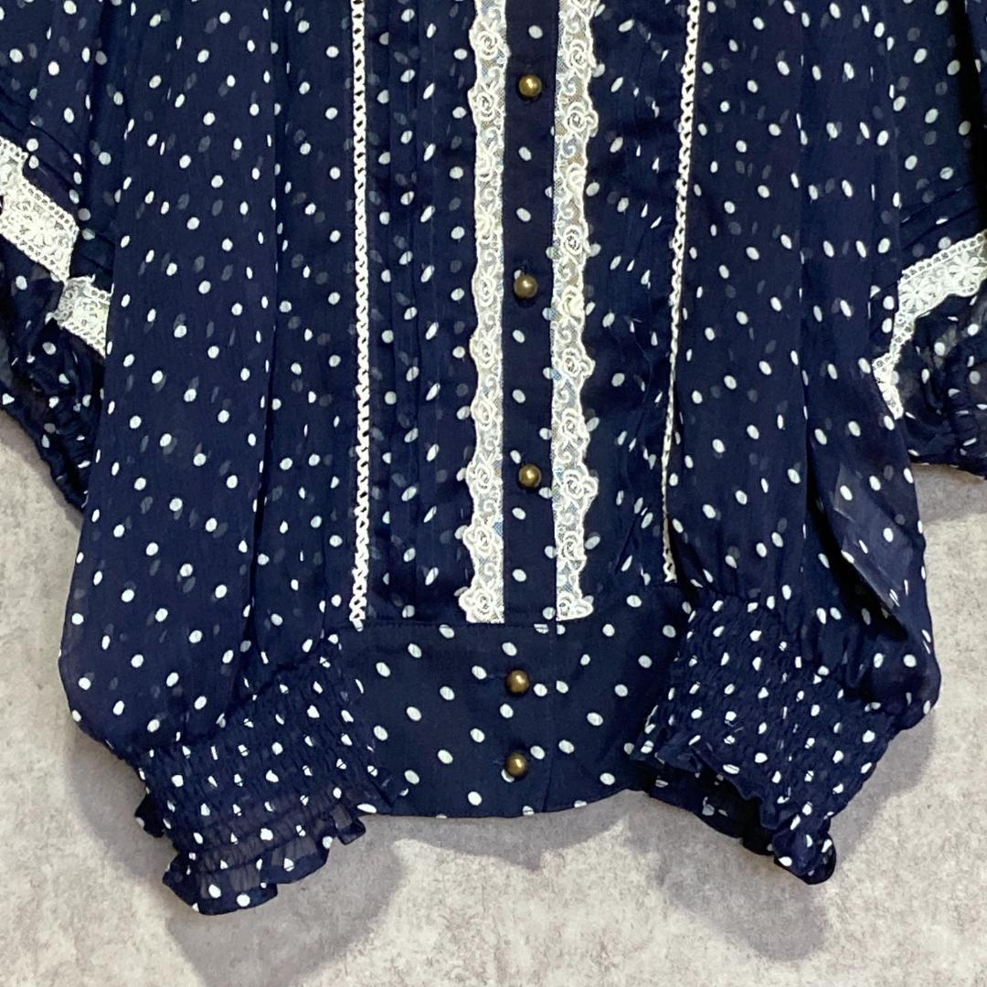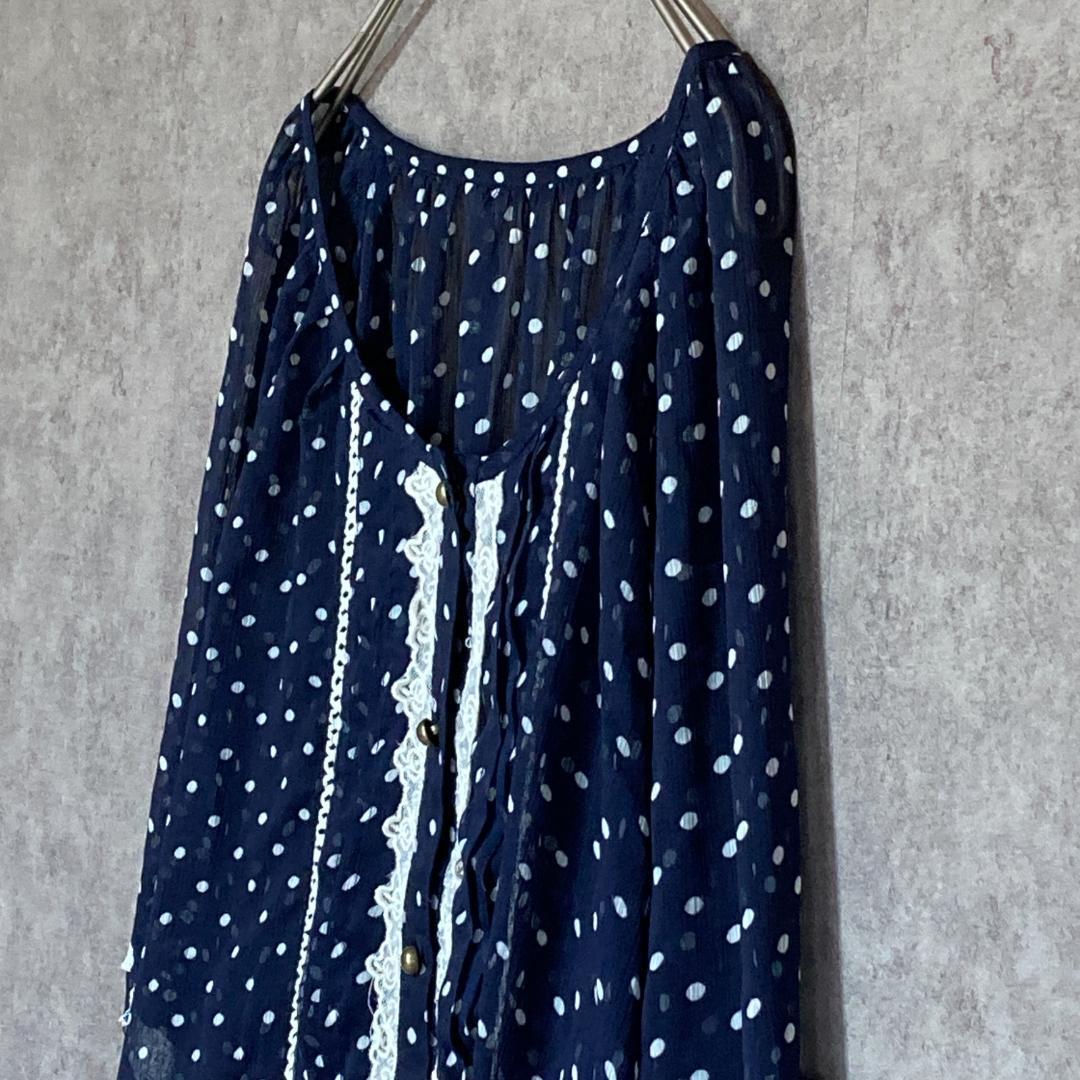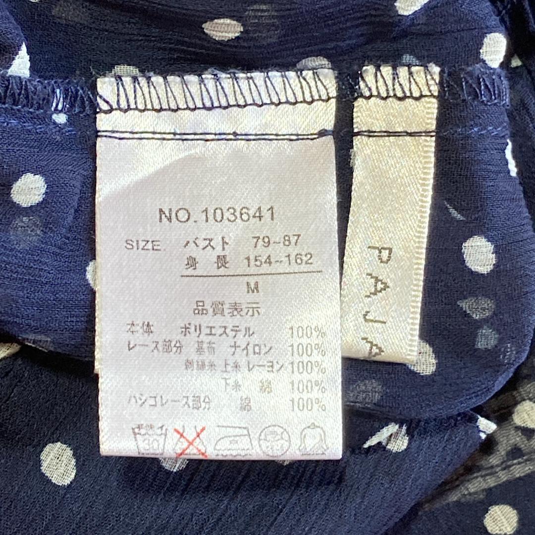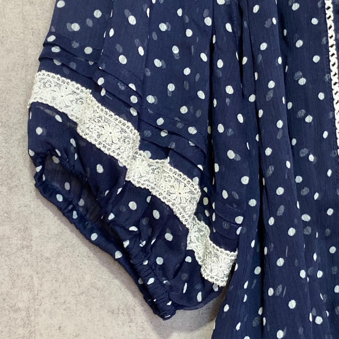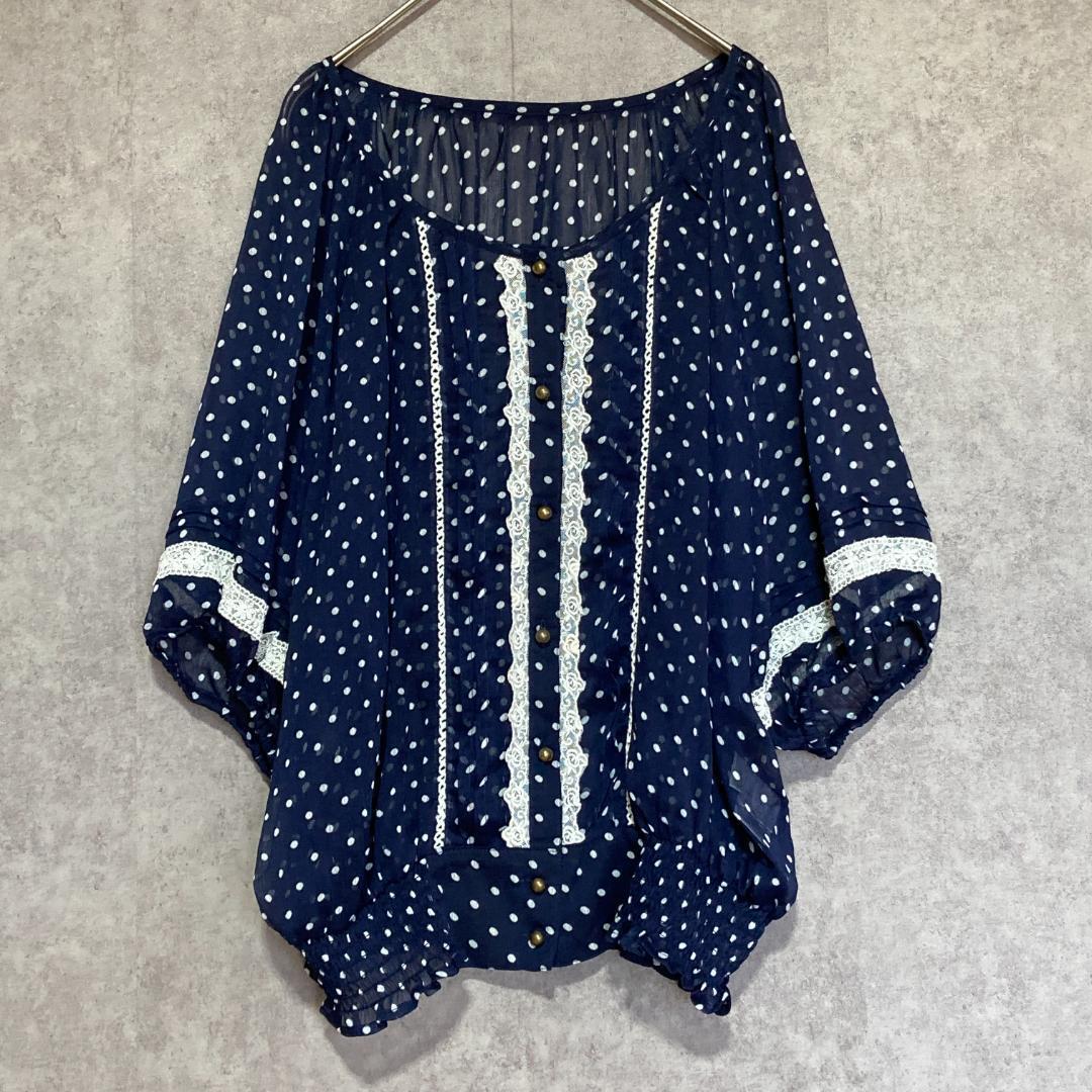 【美品】パハリート(M)シフォン五分袖ブラウス*ドット柄*総柄*Uネック