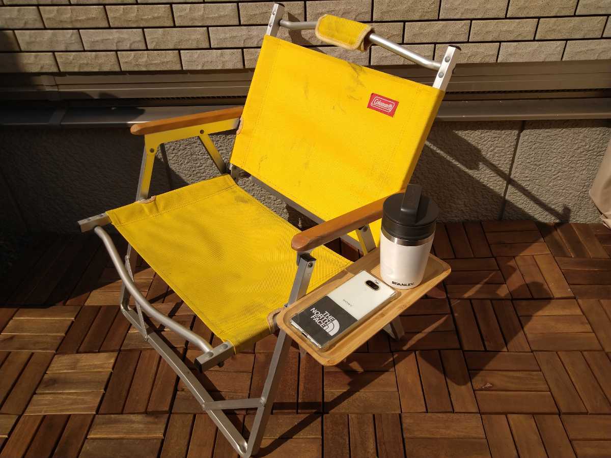 コールマン コンパクトフォールディングチェアに簡単に取り付けできるサイドテーブルです。