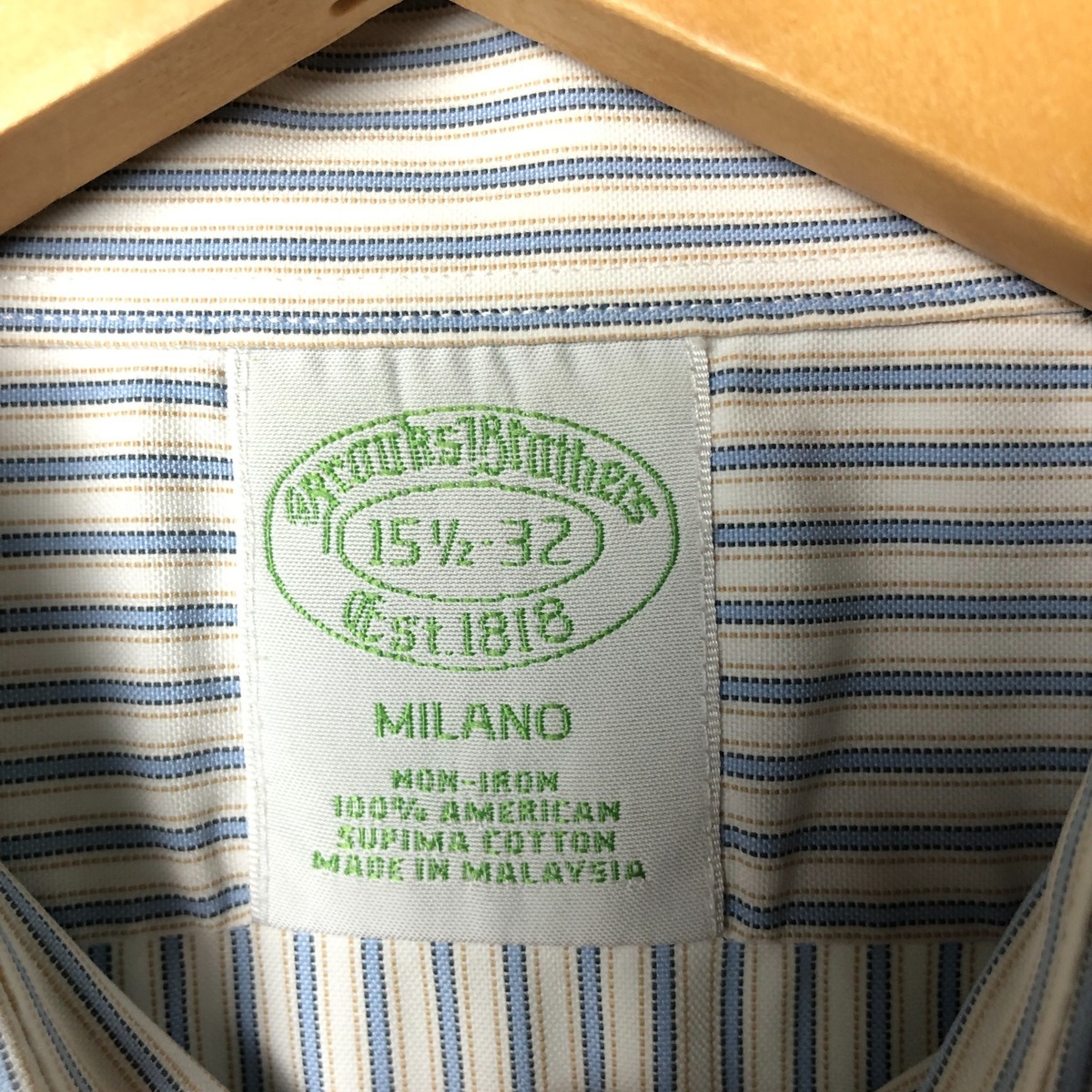 商品名: 古着 ブルックスブラザーズ Brooks Brothers Est.1818 長袖 ワイドカラー コットンストライプシャツ メンズM相当 /eaa585206 【中古】 【250926】 ブランド: Brooks Brothers ブルックスブラザーズ 特徴: 薄手 / 長袖 / 襟芯入り / ワイドカラー モデル/形状: Est.1818 / 長袖 コットンストライプシャツ 素材: スーピマコットン:100% 色: ブルー系 水色 / ホワイト系 白色 柄: ストライプ柄 生産国: マレーシア製 年代: - カテゴリ: メンズ 長袖シャツ ストライプシャツ 商品番号: eaa585206 | |