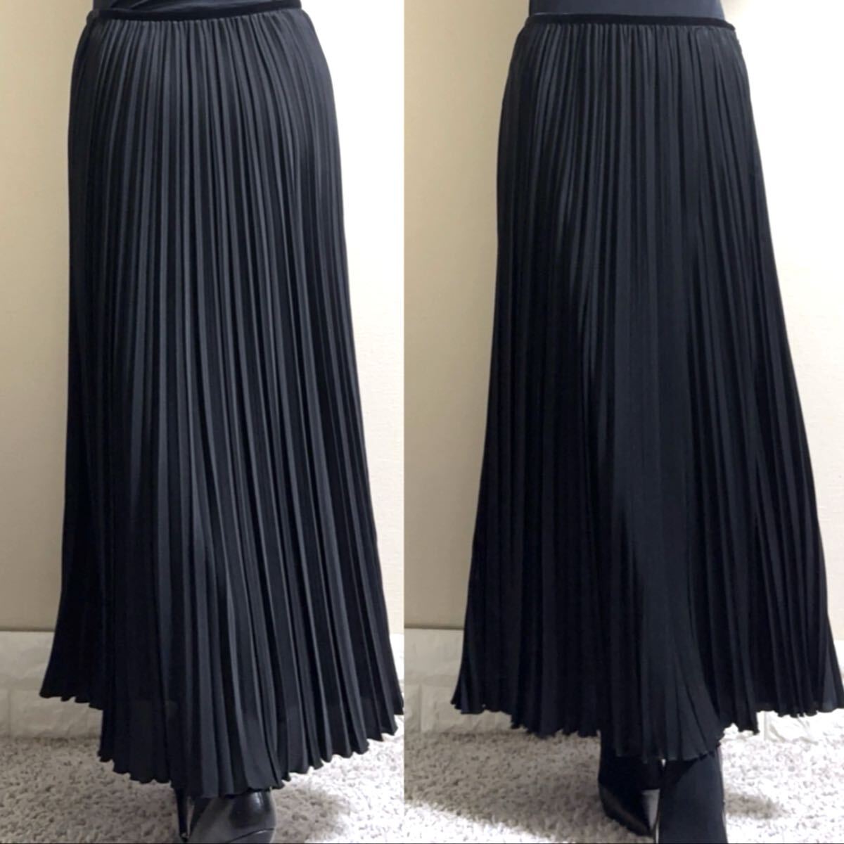 高級感溢れるウエストベルベットパイピング ロングプリーツスカートです。