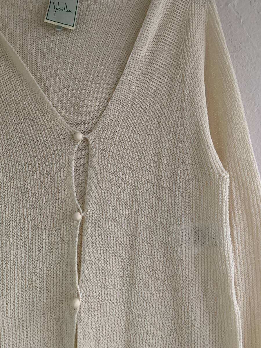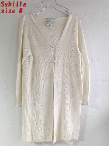 ◆S24◆Sybilla シビラ 透かしニット Vネックフード付きロングカーディガン  アイボリー サイズM