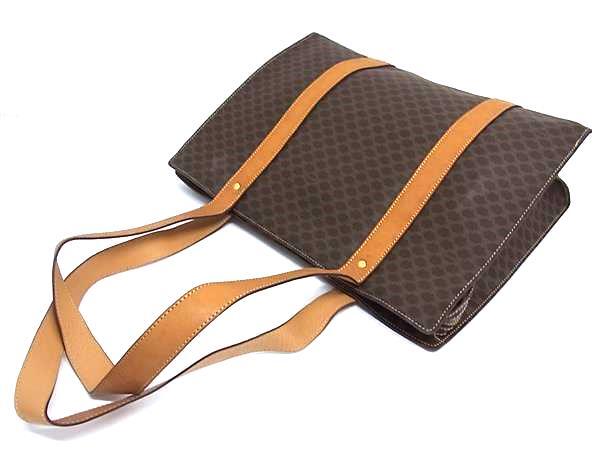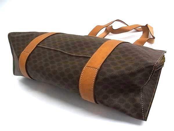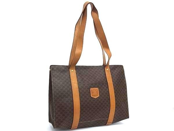 1円 CELINE セリーヌ マカダム柄 PVC×レザー トートバッグ ショルダーバッグ 肩掛け レディース メンズ ブラウン系 FR4457