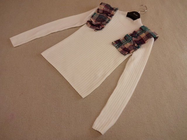 銀座マギー購入 Re.Verofonna★定価\20000超!きらきらフリンジ&チュール付 リブニット アイボリー白★