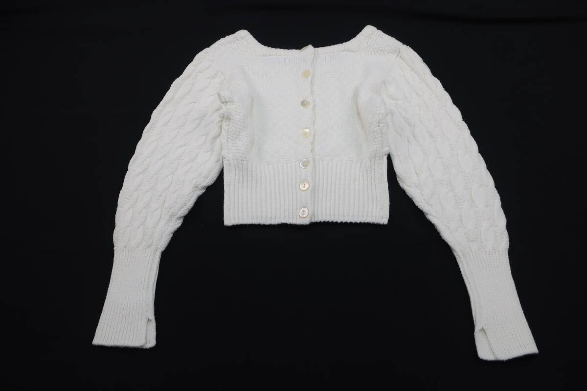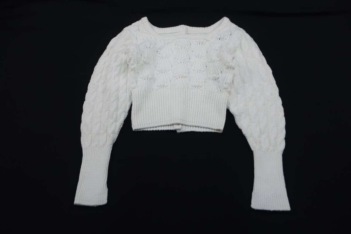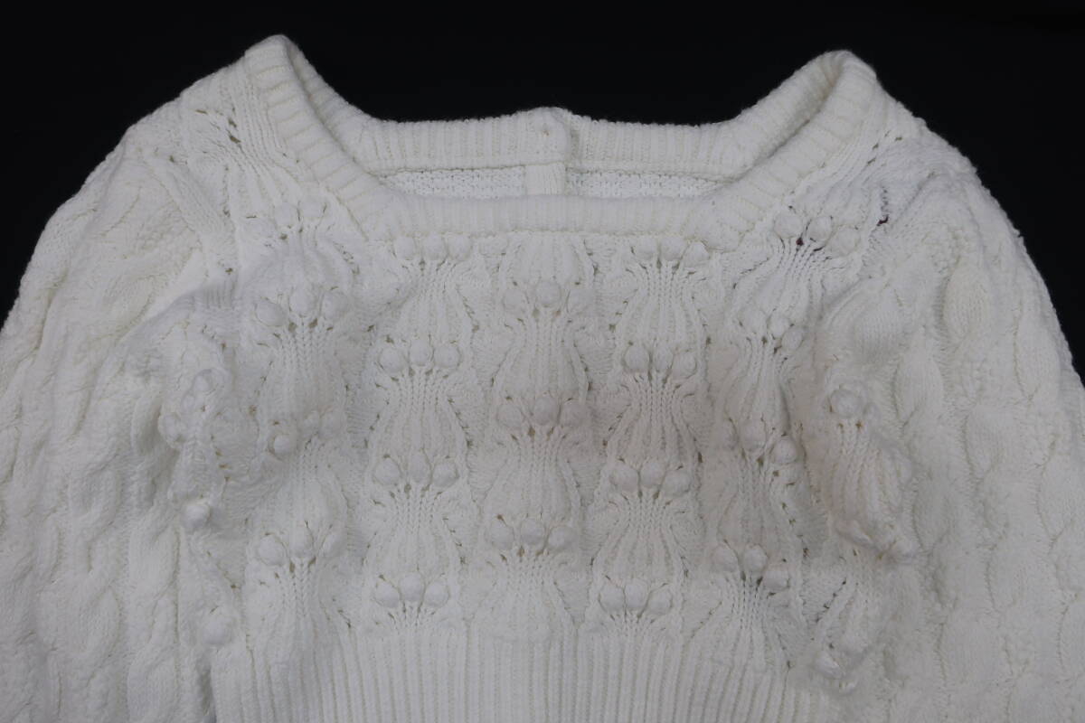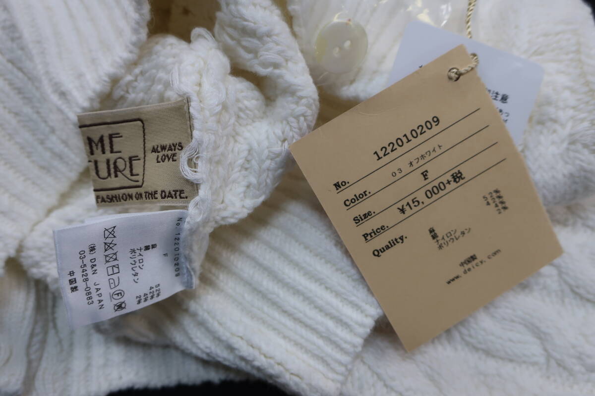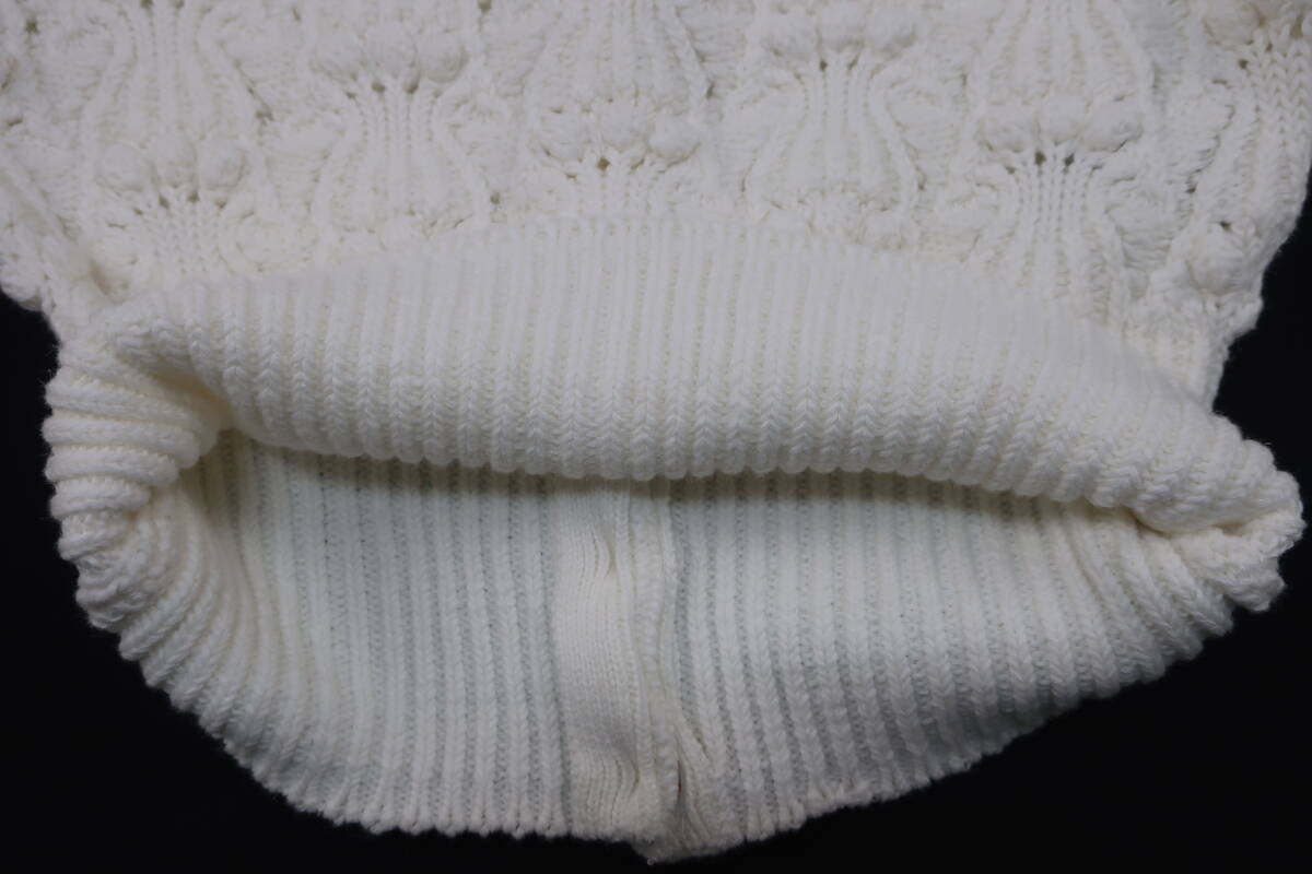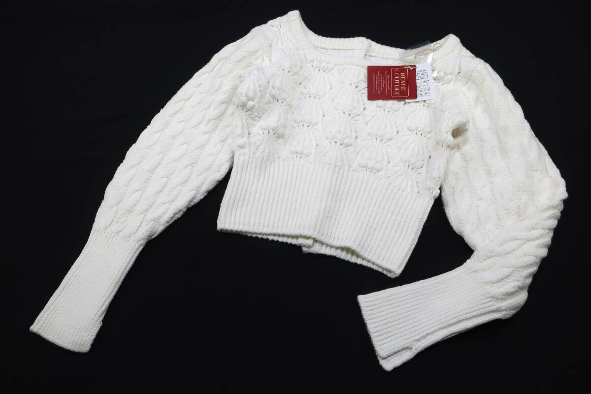 【送900円】1362 タグ付き品 ME&ME COUTURE ミークチュール ショート丈ニット セーター バックボタン 長袖 オフホワイト F