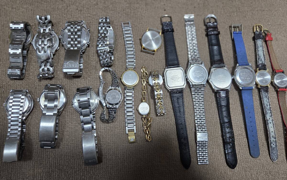 部品取り用に保管していた、すべて不動のジャンク品であり、傷、錆び、汚れ等がございます。ムーブメントの確認等は行っておりません。