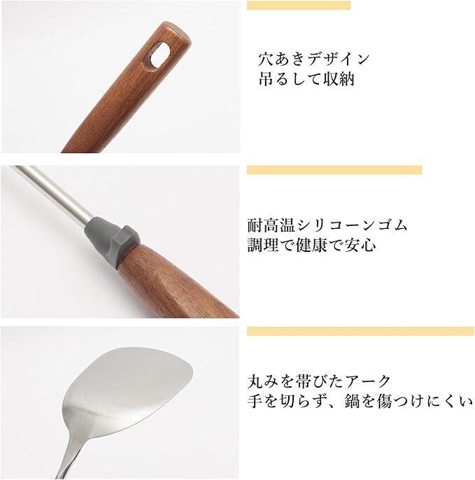 Amazon | WANGYUANJI ステンレス製 おヘラ 木製ハンドル 調理スプーン 滑り止め 調理器具 キッチン用品 頑丈 長持ち 家庭用 業務用 (小)