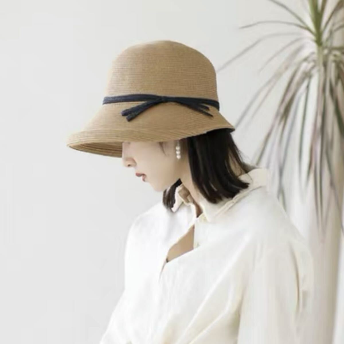 ・ナチュラルでシンプルなつば広なレトロ感に溢れた可愛い雰囲気のデザインが魅力的。帽子の側面のリボンがとっても可愛い。