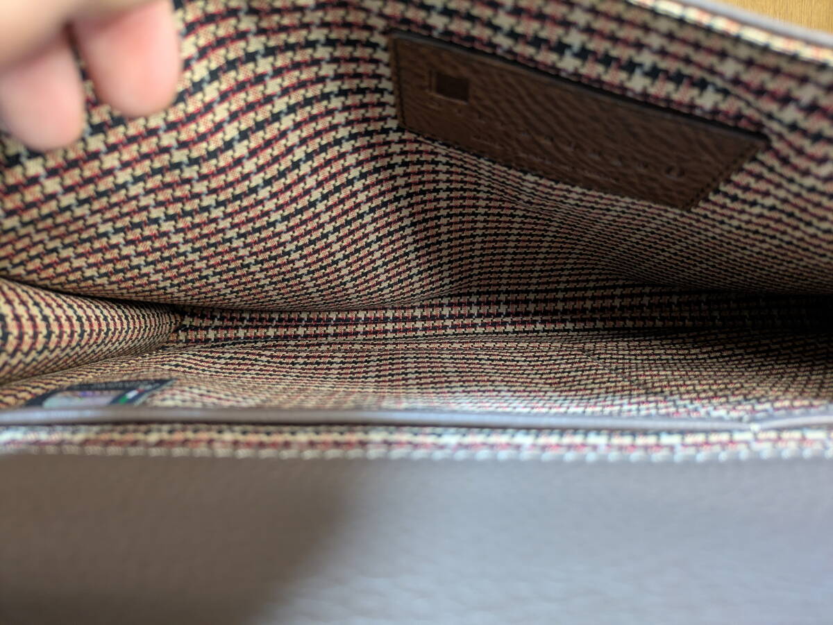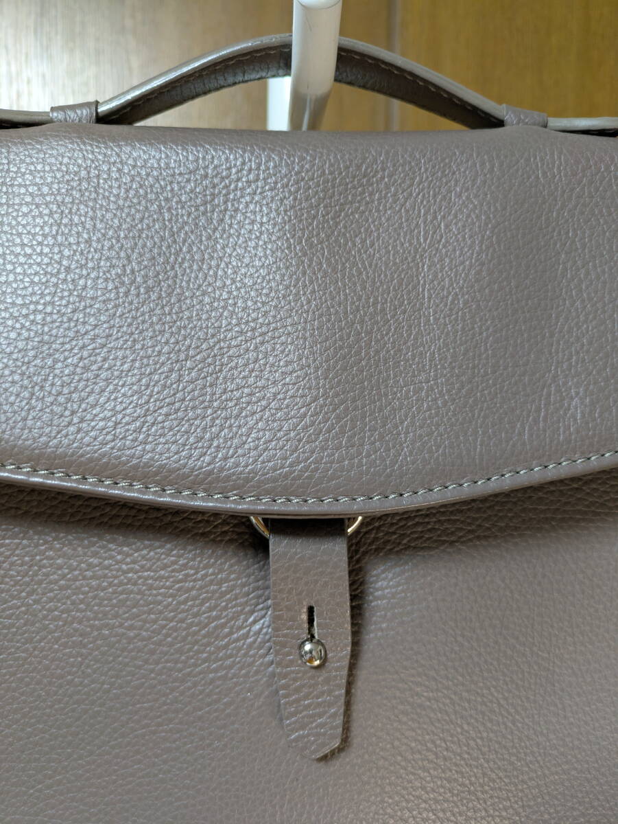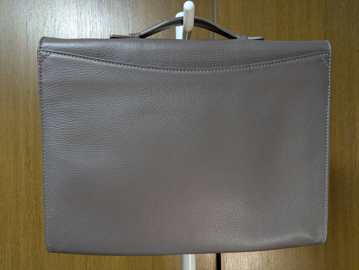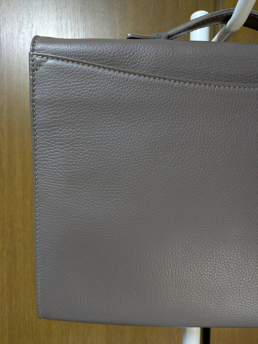 ステファノマーノのビジネスバッグになります。シュリンクのカーフレザーです。濃い目のグレージュなのでスーツの色に合わせ易いと思います。2016年頃の製品で使用頻度も低く目立ったダメージのない綺麗な状態です。是非ご検討下さい。