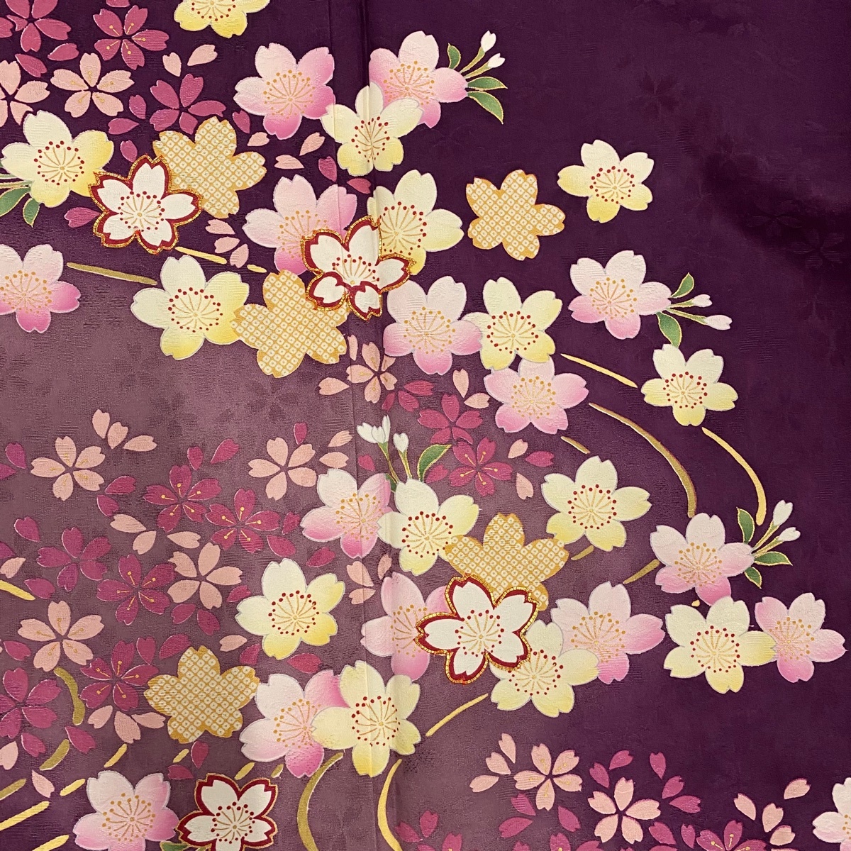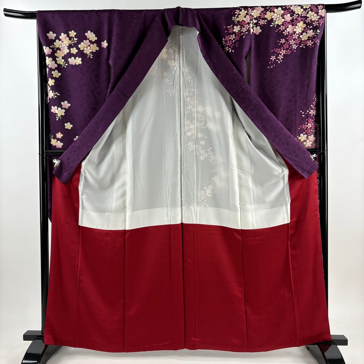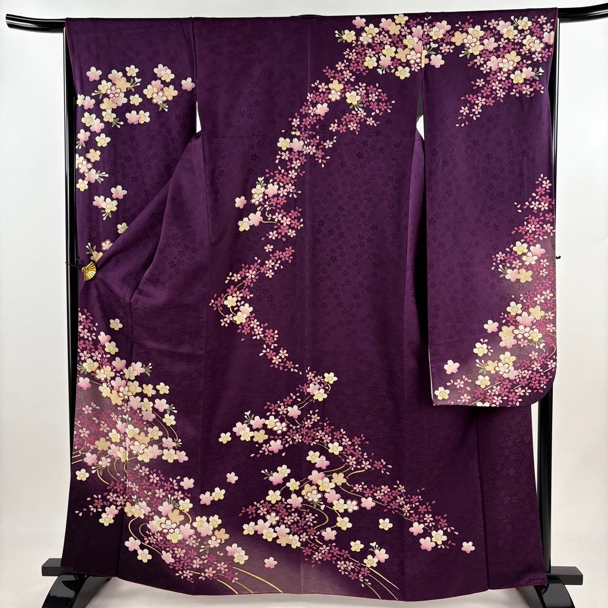 振袖 名品 桜 流水 金糸 金彩 紫 袷 身丈162 裄丈65 M 正絹 【中古】 |