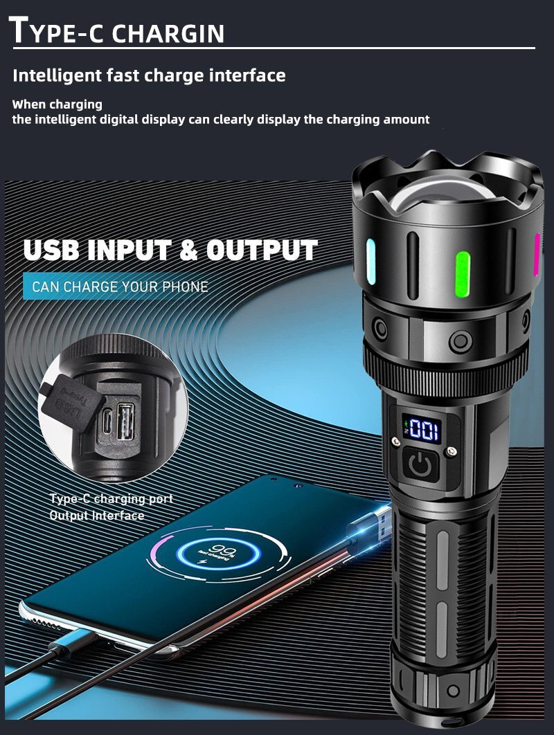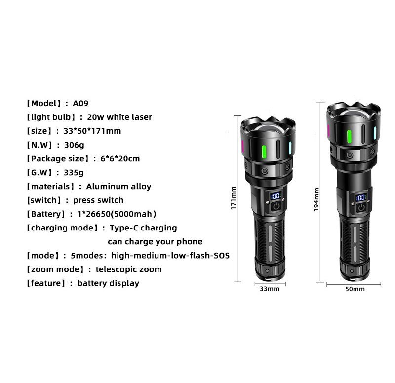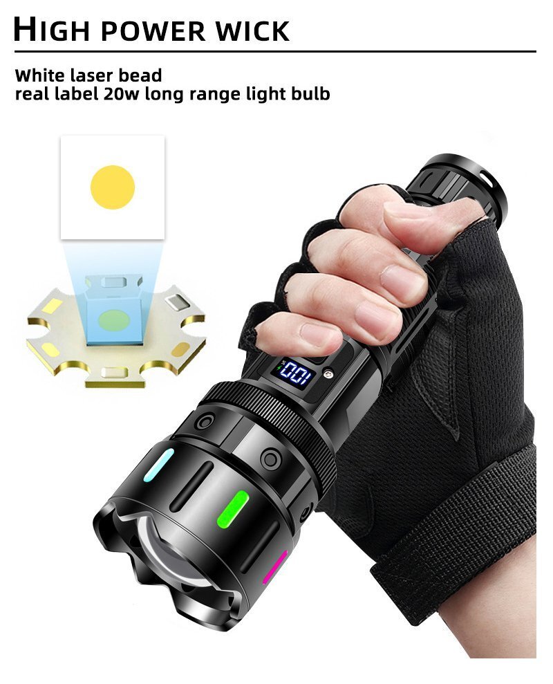 充電式 懐中電灯 フラッシュライト Type-C充電 5段調光 5000mahの大容量 20W白色レーザー懐中電灯 5速切り替え LED懐中電灯 yhw013