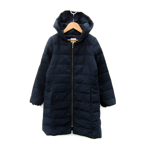 ル ジュン LE JUN ダウンコート ロング丈 フード付き 無地 S 紺 ネイビー /SY5 レディース
