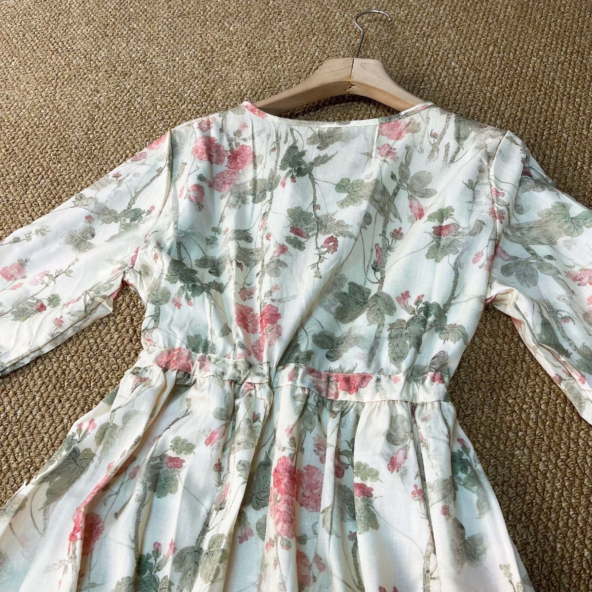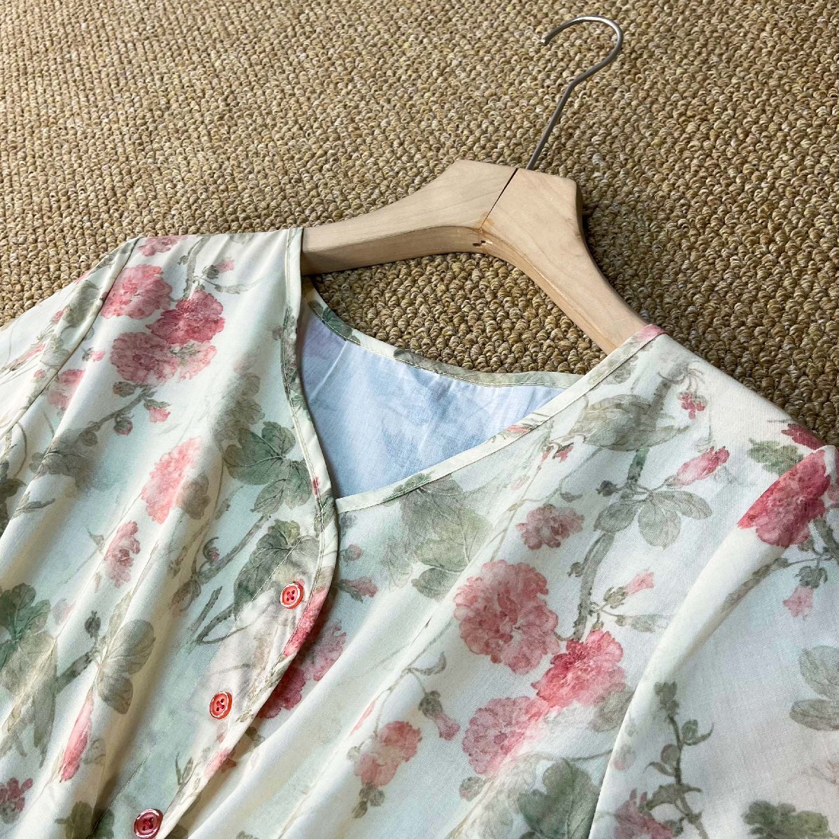ワンピース カナダ製造 リネン混 上品 ソフト 花柄 Vネック 着せ エレガント 旅行 花火大会 キレイ デート 旅行 レディース 夏 SIZE:XL