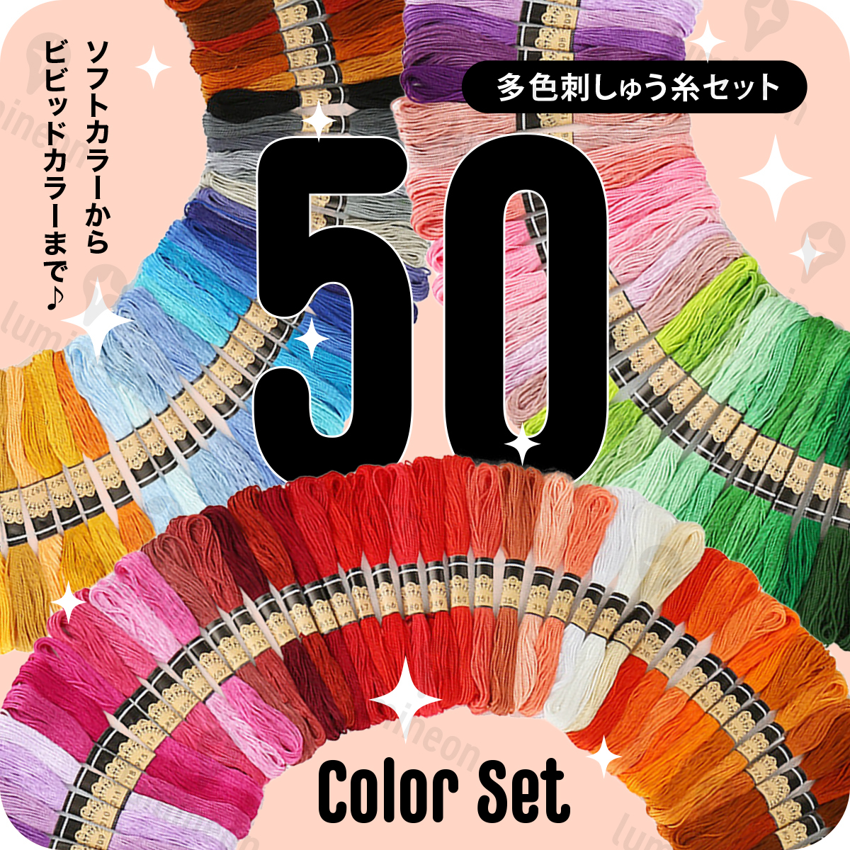 刺繍 糸 刺しゅう 25番 50色 アソート セット クロスステッチ 裁縫 手芸 ミサンガ 白系 黒 赤 青 黄色 青 緑色 くすみ ベージュ g012a