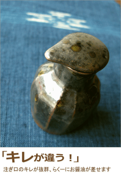 | 何にでもついお醤油をかけてしまう 大のお醤油好きさんにとってもおすすめ! 可愛くて機能的な 醤油さしを見つけました ネジで蓋がしまり キレもバツグン! 卓上のお酢入れにも - ポイント - ・注ぎ口のキレが抜群、らくーにお醤油が差せます ・たれないので受け皿いらず。テーブルも汚しません ・軽くて持ちやすく、かわいい ・和、洋問わずどんな食卓にも似合います 商品名 : 楽らく醤油さし C 商品番号 : imt063 全体サイズ(cm) : 直径5×高さ8 容量(満水) : 100cc 材質 : 陶器 重量 : 90g 生産国 : 日本(有田) ※ディスプレイによる色の違いはご了承下さい - 陶器(土物)の特性とお願い- 土物は同じ技法、同じ窯で焼成しても土や釉薬に含まれる天然鉱物などの影響や天候で焼き上がりは微妙に異なります。工業製品のように同一の物になる事はありません。 手作りの不均一性、窯変、釉薬の細かいヒビ(貫入)や垂れ等は製造元より、土物の特性として良品の扱いとなります。ご理解頂きお買い求めくださいますようお願い申し上げます |
