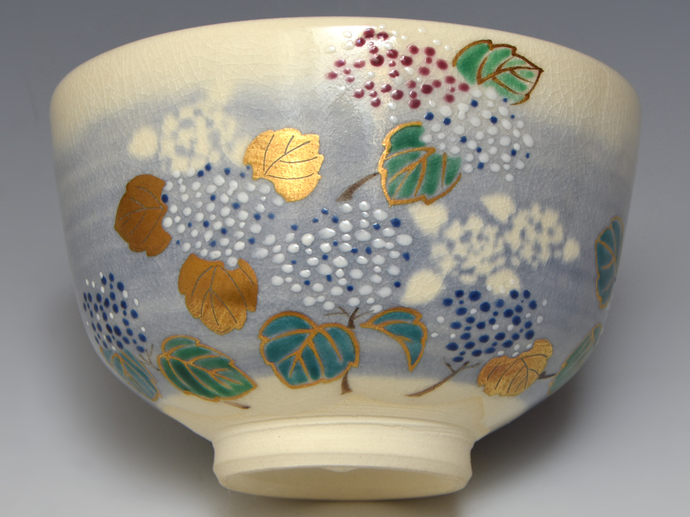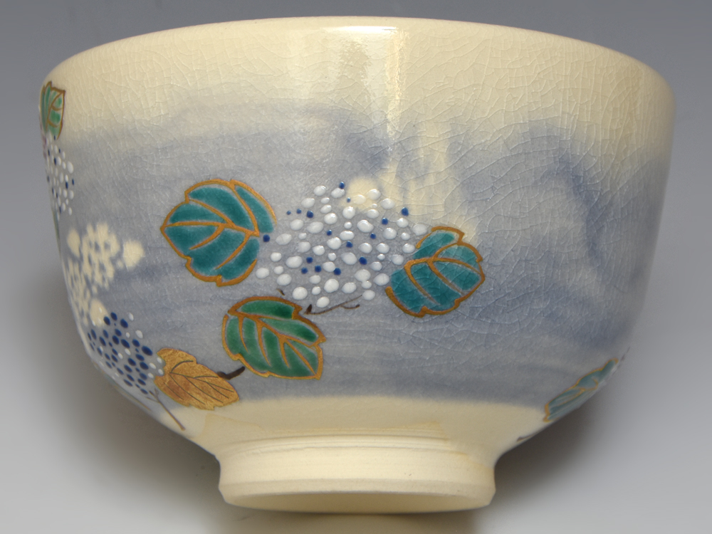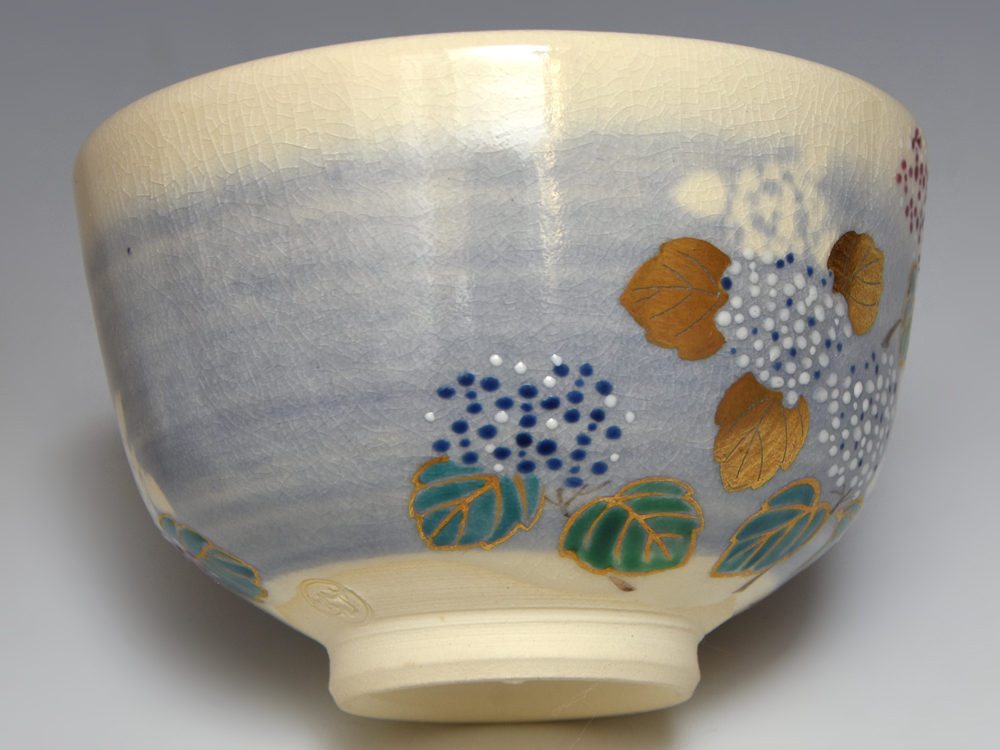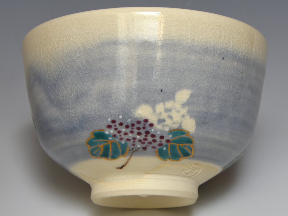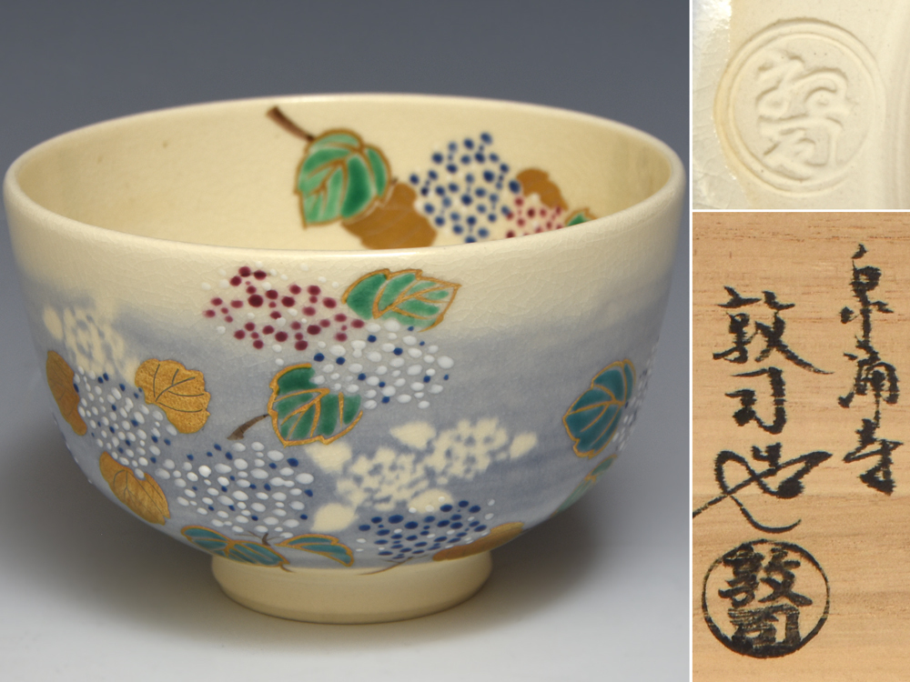 泉涌寺 山川敦司(造)紫陽花色絵茶碗 共箱 京焼 茶道具 陶磁器 三代山川巌の長男 |