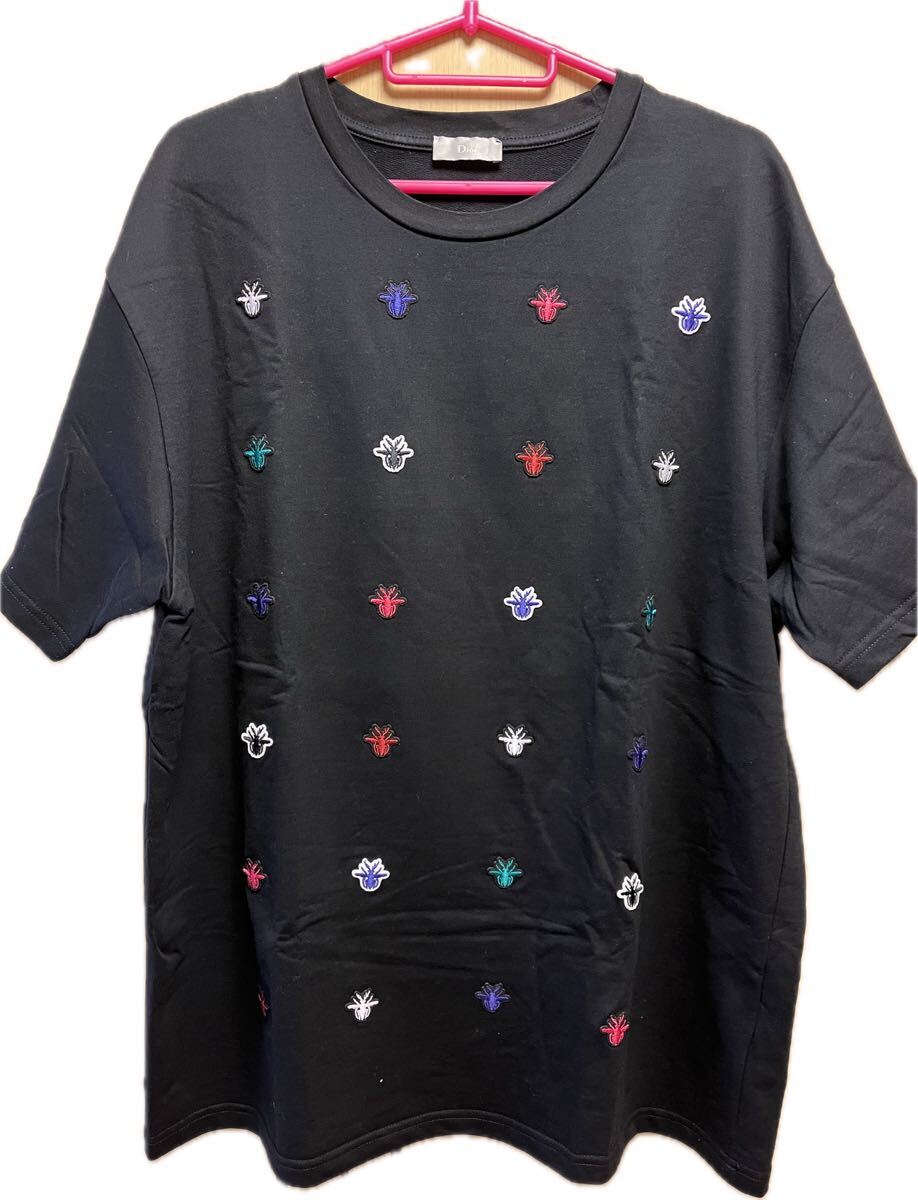 正規 18AW Dior Homme ディオールオム KRIS VAN ASSCHE クリス ヴァン アッシュ マルチカラー BEE 蜂 刺繍 パッチ クルーネック Tシャツ 黒 XL