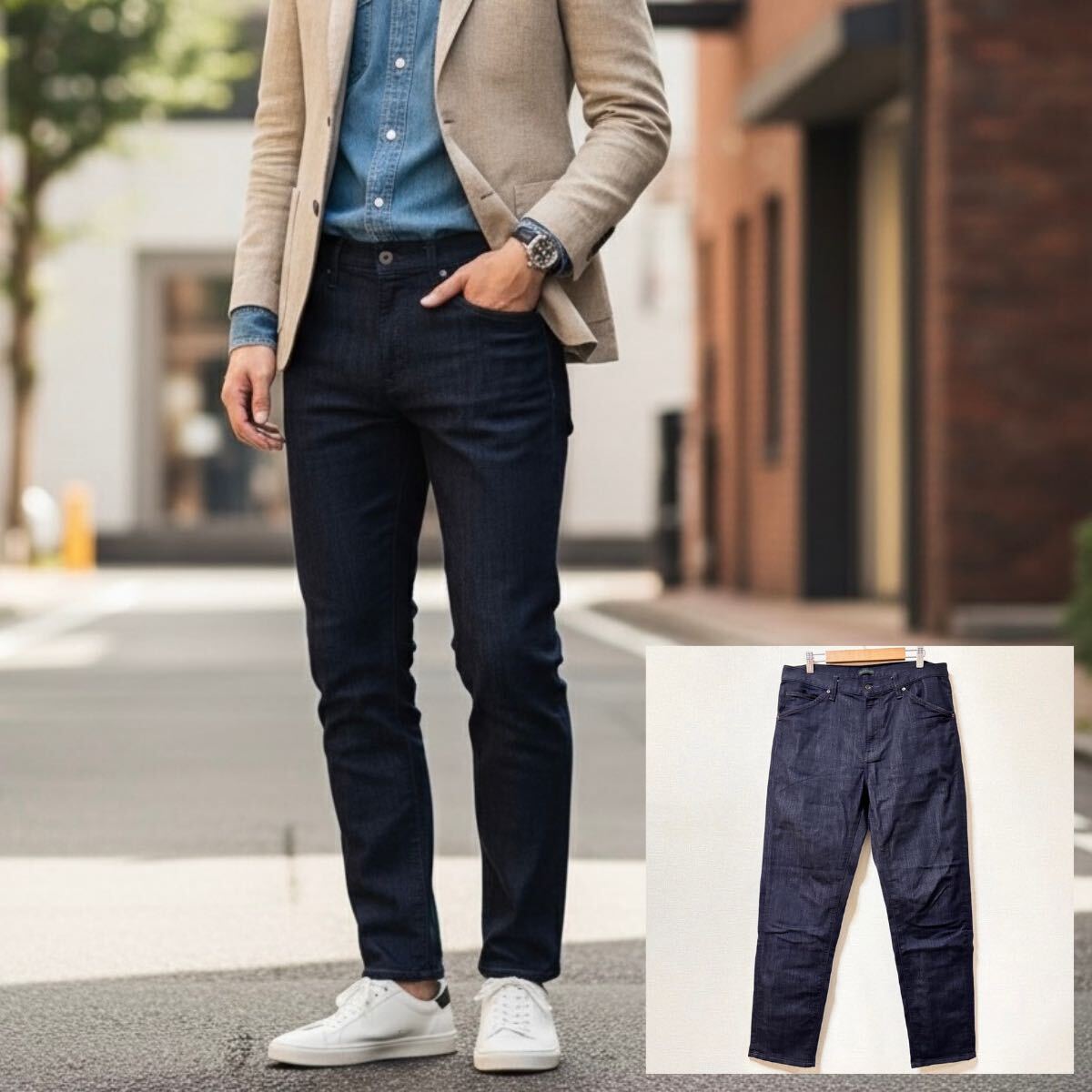 ユニクロのテックデニムジーンズです。本格デニム見えする新素材で仕立てられたパンツになります。色落ちしにくく、速乾性にも優れた機能性抜群なアイテムです◎目立つキズや汚れなどもないのでまだまだお使いいただけると思います^ ^