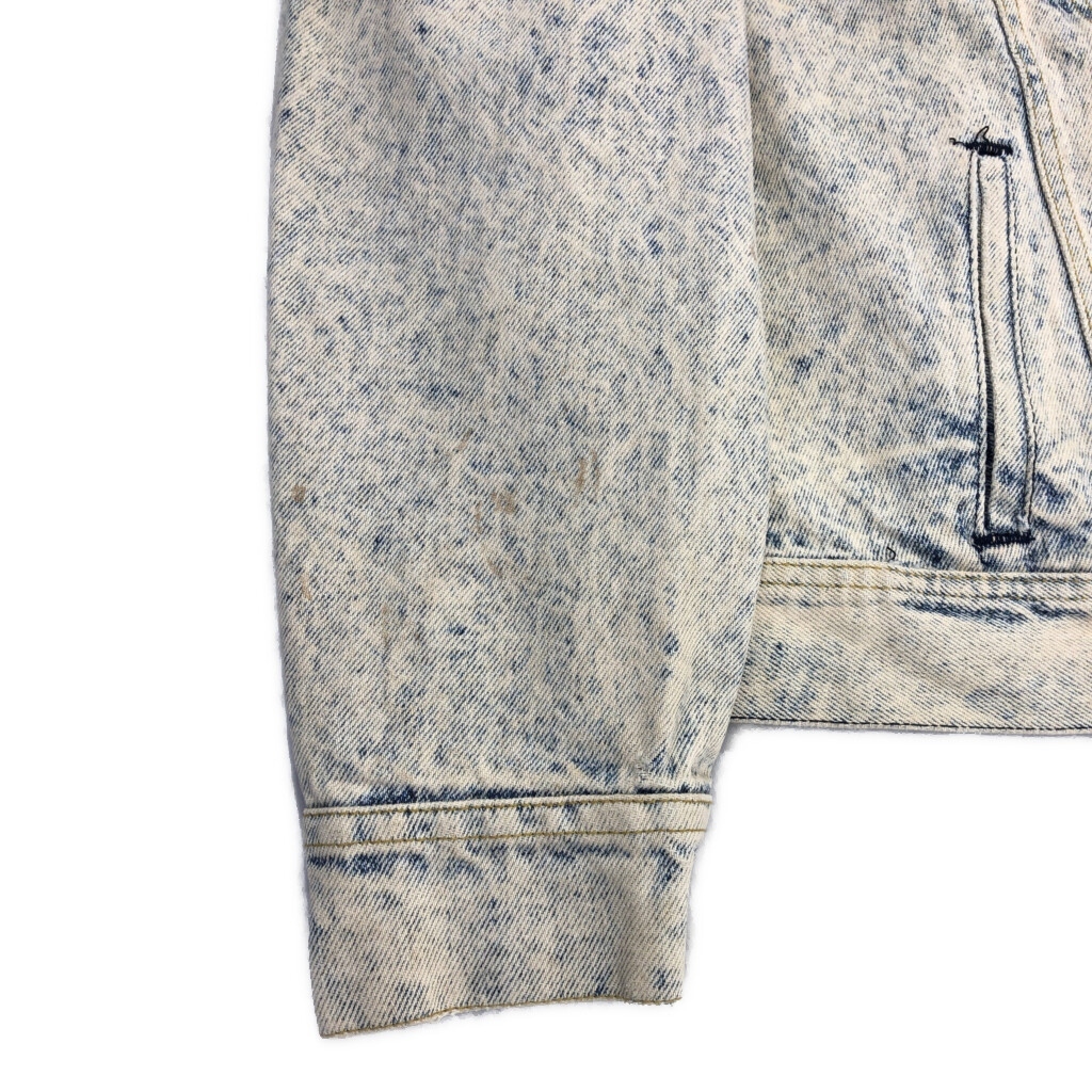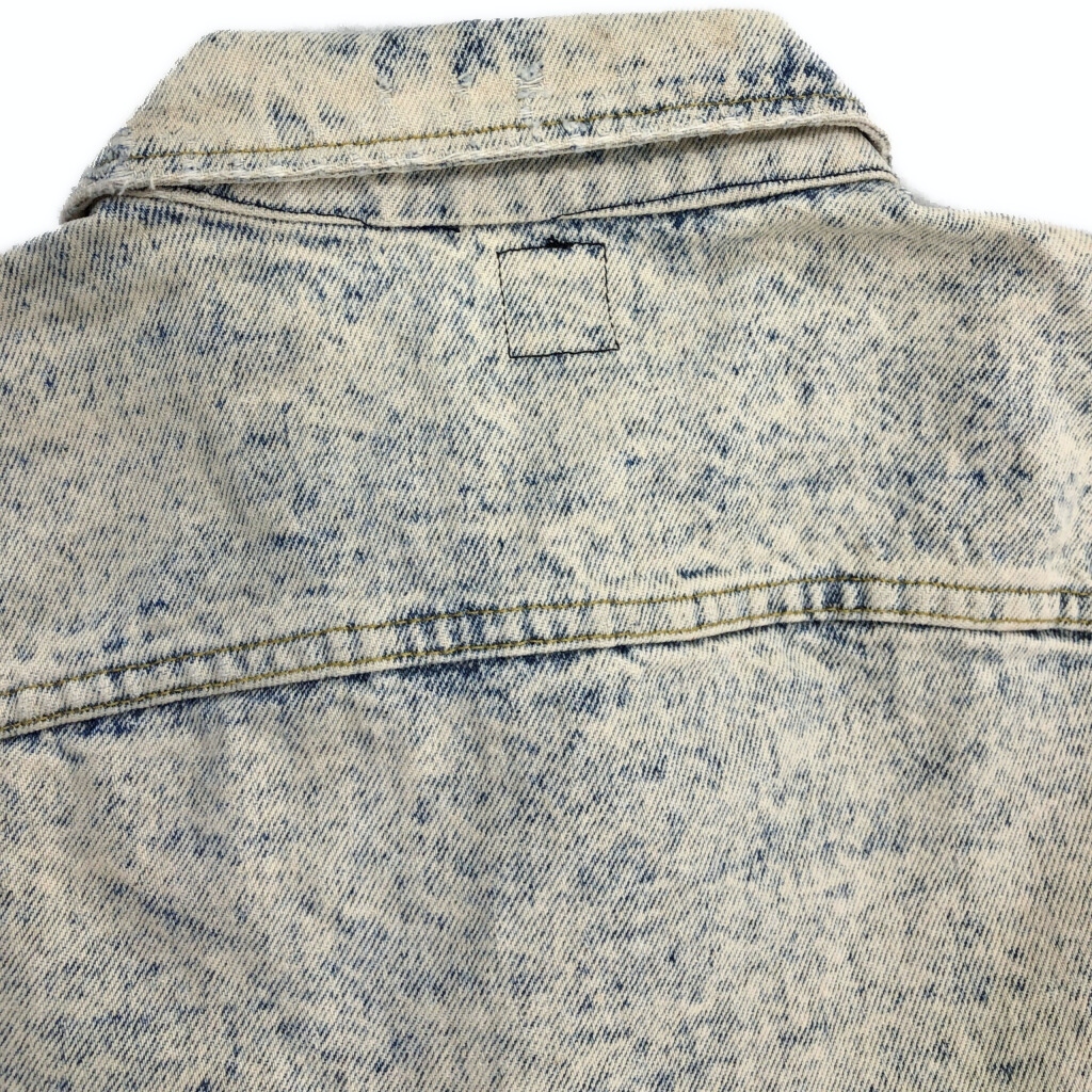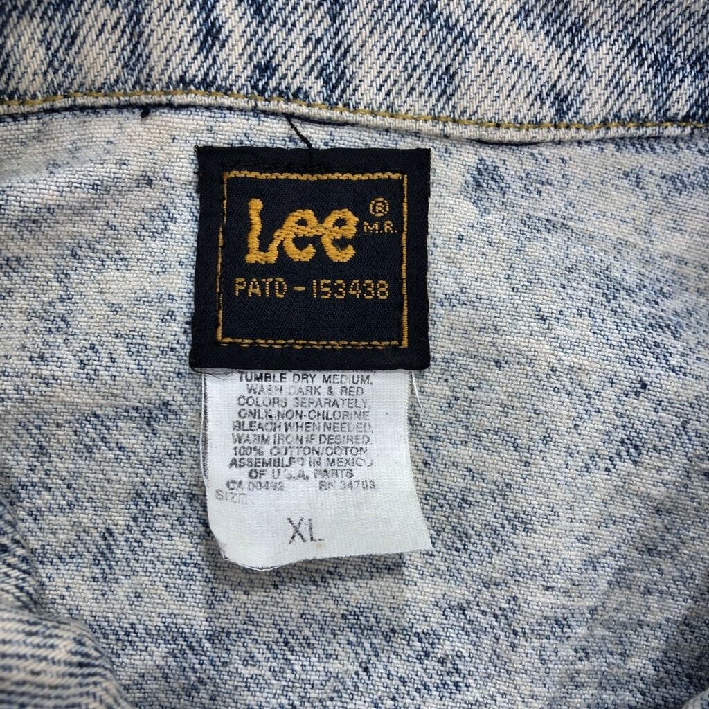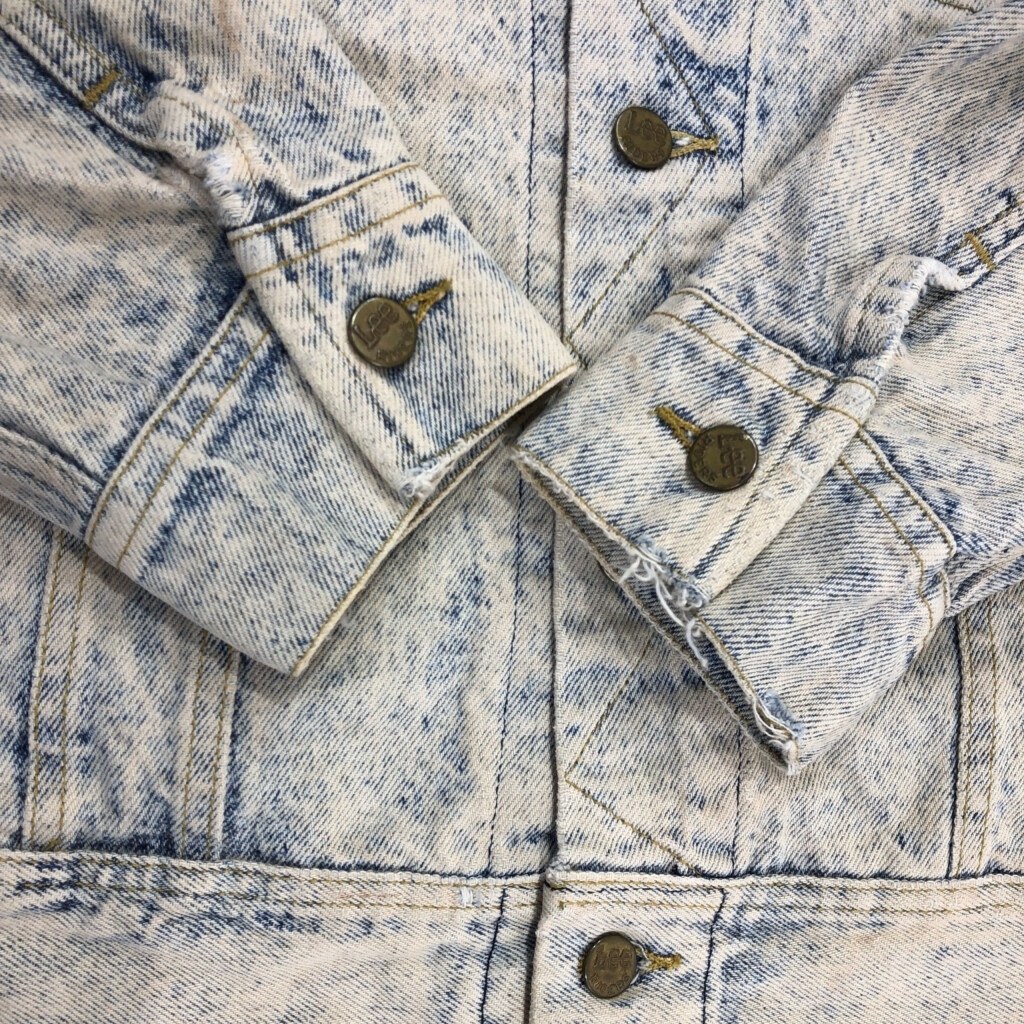 【商品管理番号】 V3919 【ブランド】 Lee/リー 【サイズ】 XL 【実寸サイズ】 肩幅:約58cm 着丈:約63cm 身幅:約70cm 袖丈:約63cm 【主な素材】 表地 : コットン 【色】 ブルー 【仕様】 90年代 ケミカルウォッシュ 【状態】 汚れ:全体 キズ:襟、袖先、裾 特記事項:変色 |