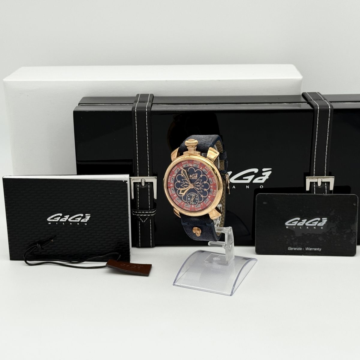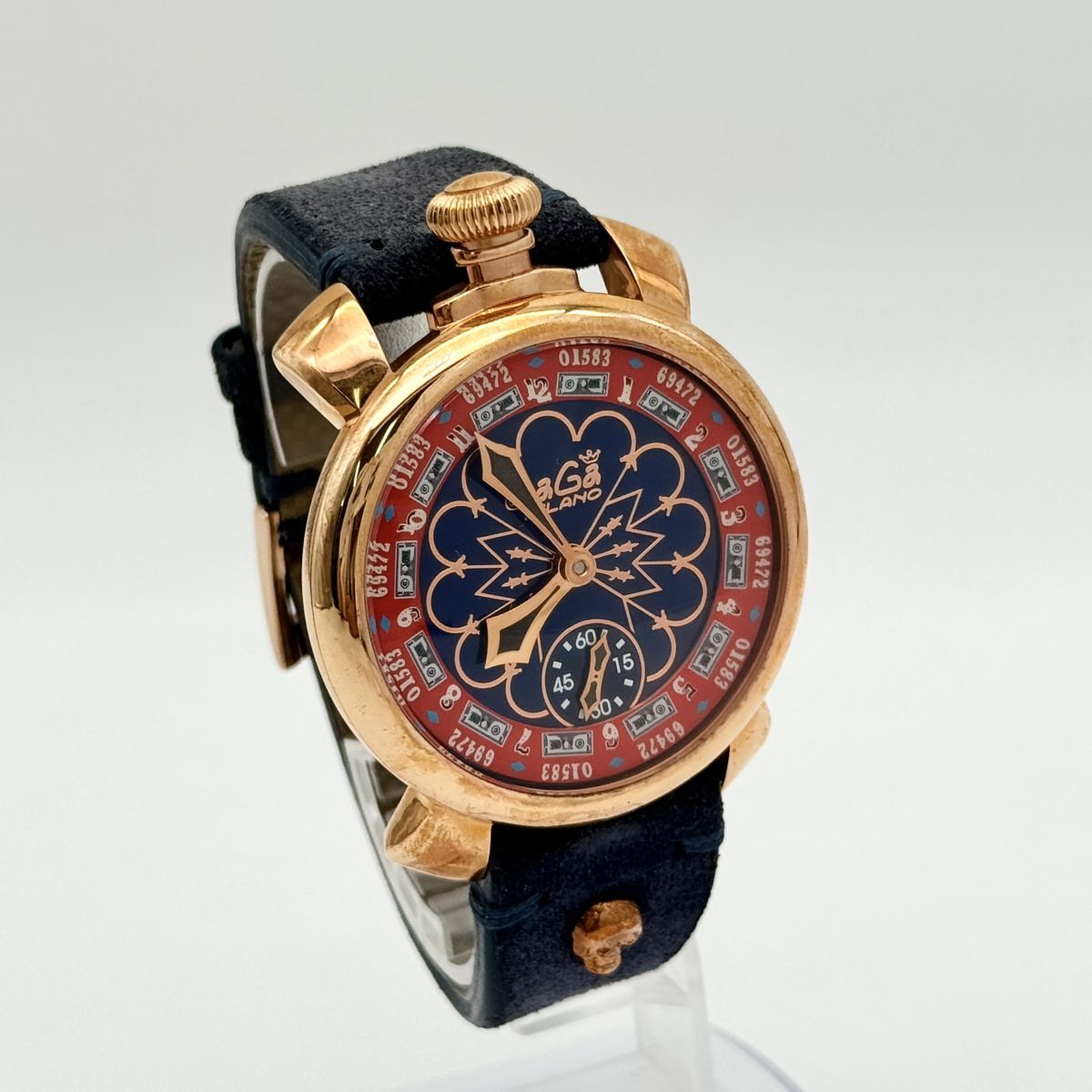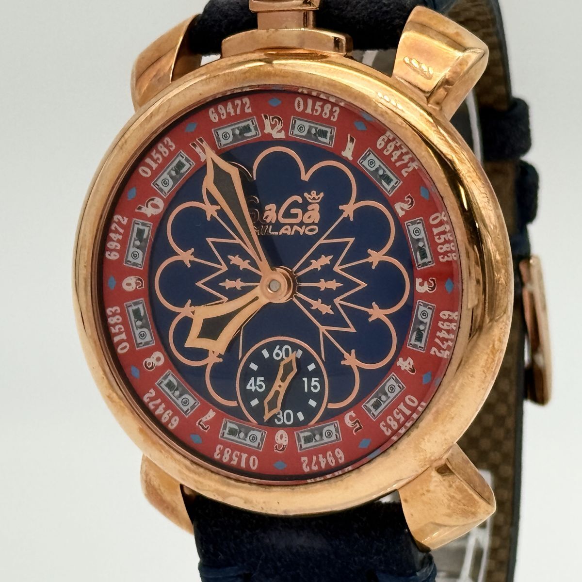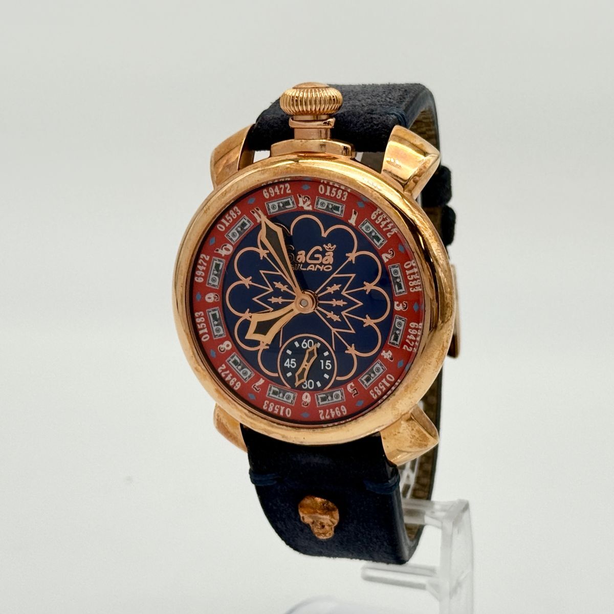 GaGa MILANO ガガミラノ Manuale マヌアーレ 5011 137/300 GP GP×革 手巻き 青文字盤