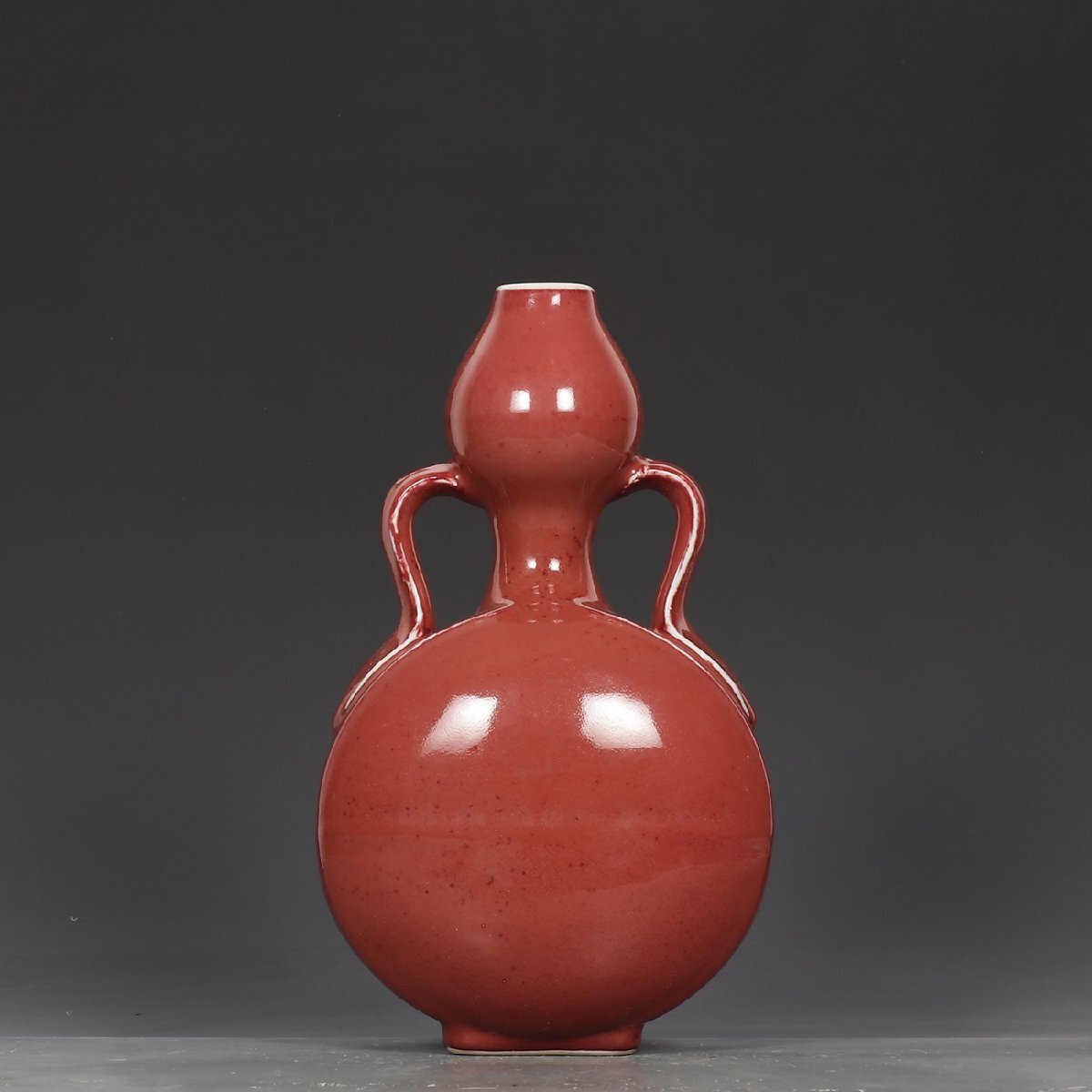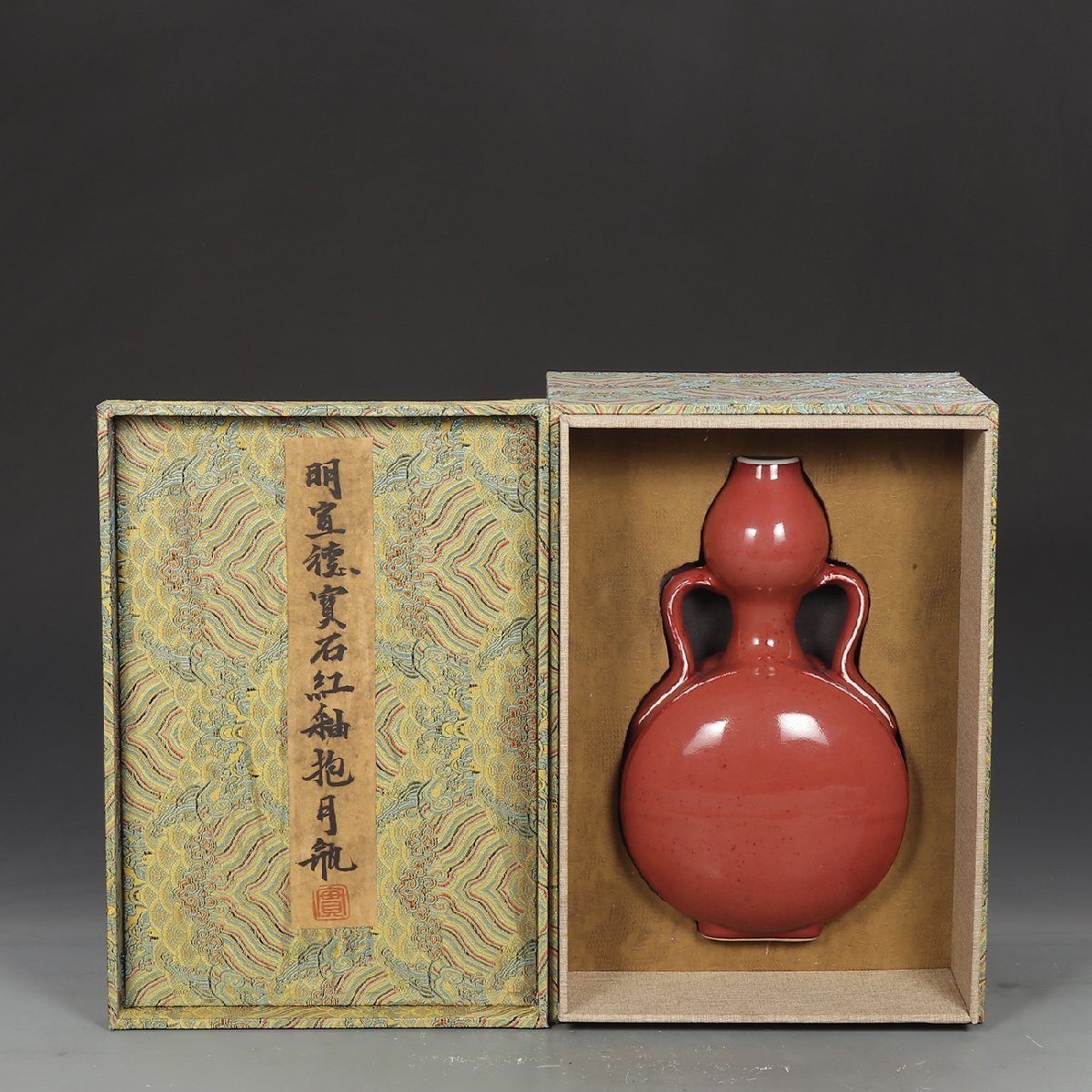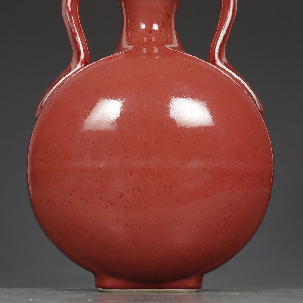 【安】明時代 大明宣徳年製 宝石紅釉双耳抱月瓶 共箱 唐瓷 染付 古陶瓷 中国古美術 古董品 230 サイズ(約寸) |