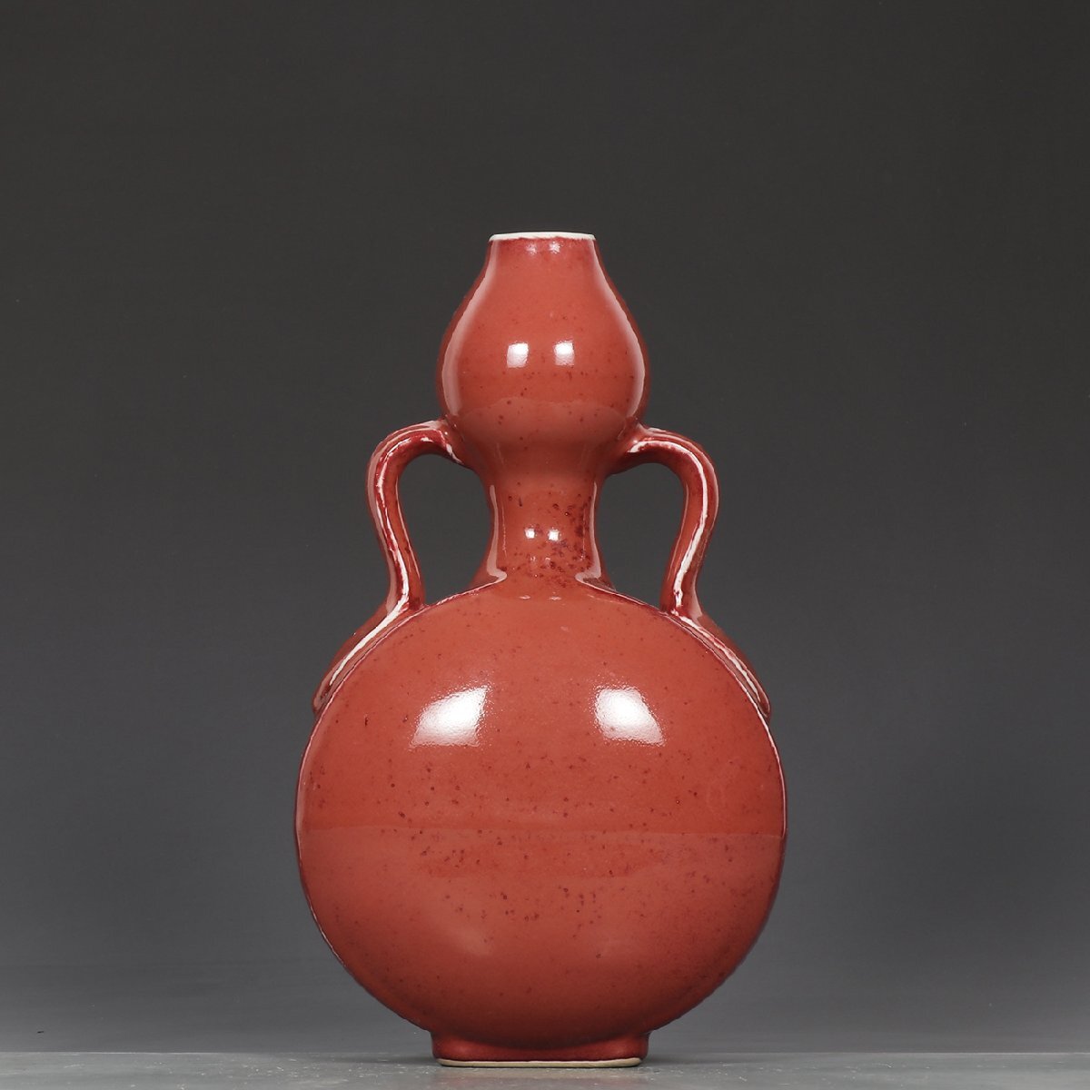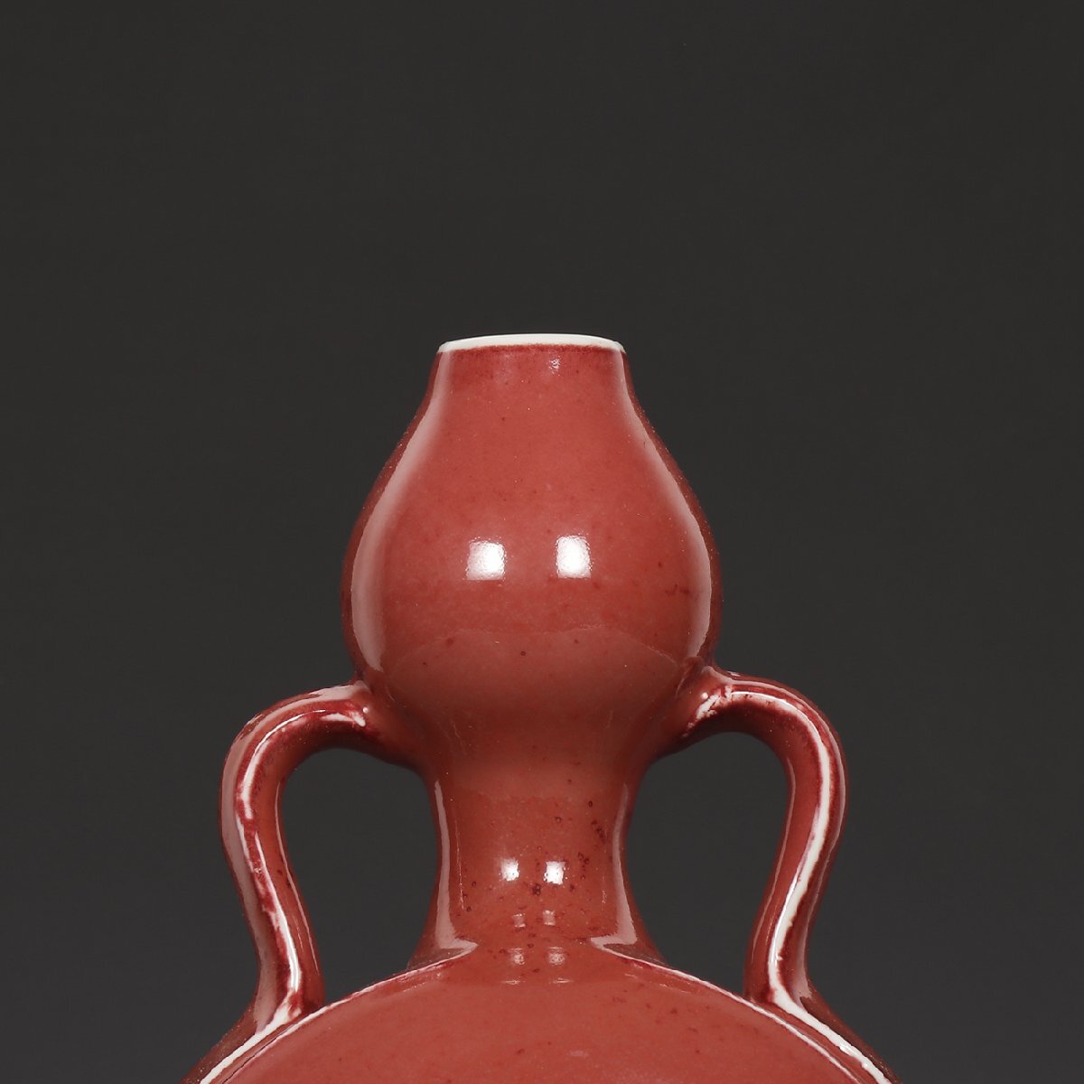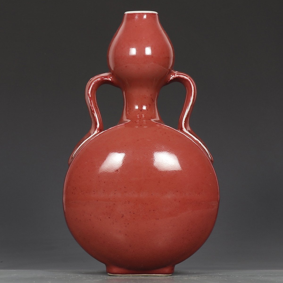 【安】明時代 大明宣徳年製 宝石紅釉双耳抱月瓶 共箱 唐瓷 染付 古陶瓷 中国古美術 古董品 230 サイズ(約寸) |