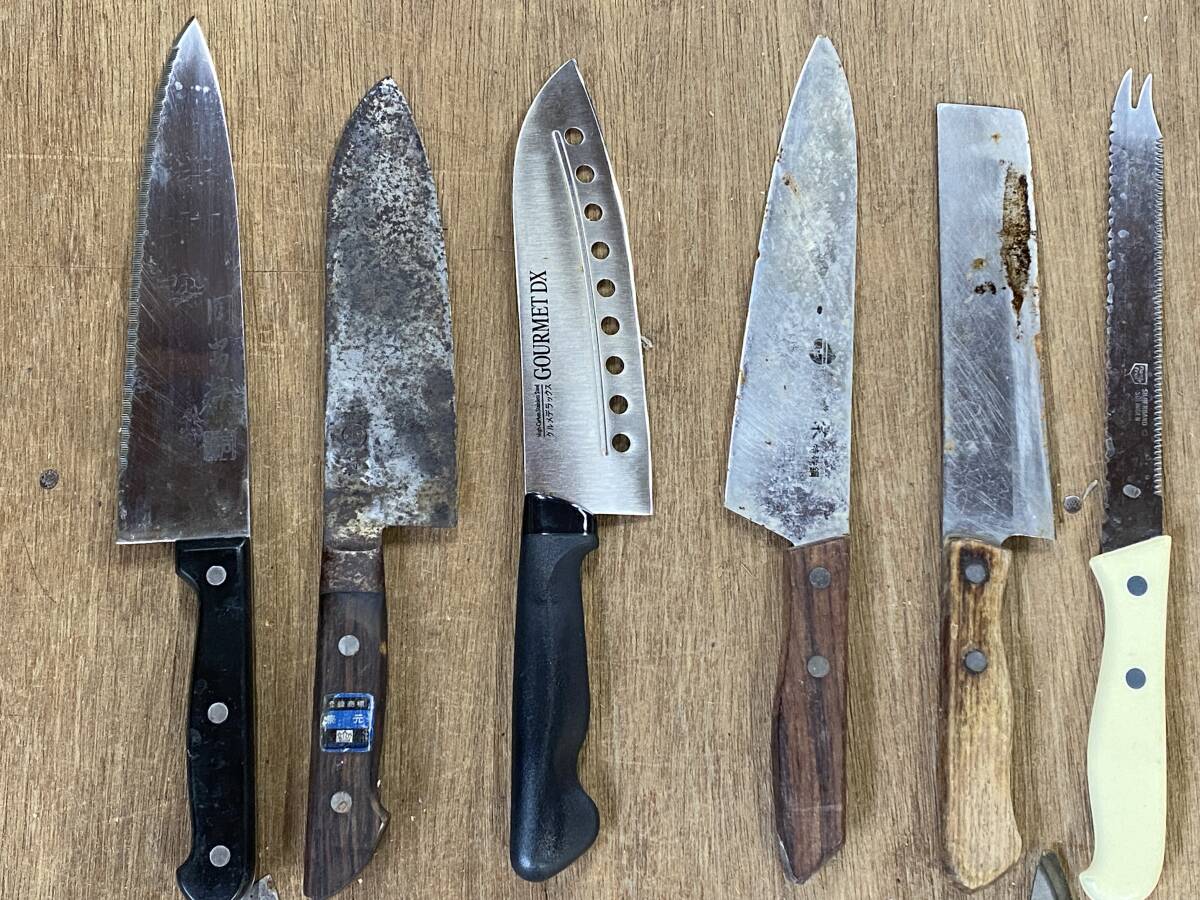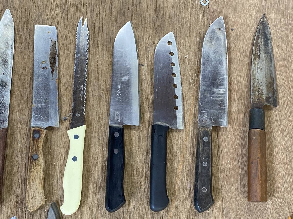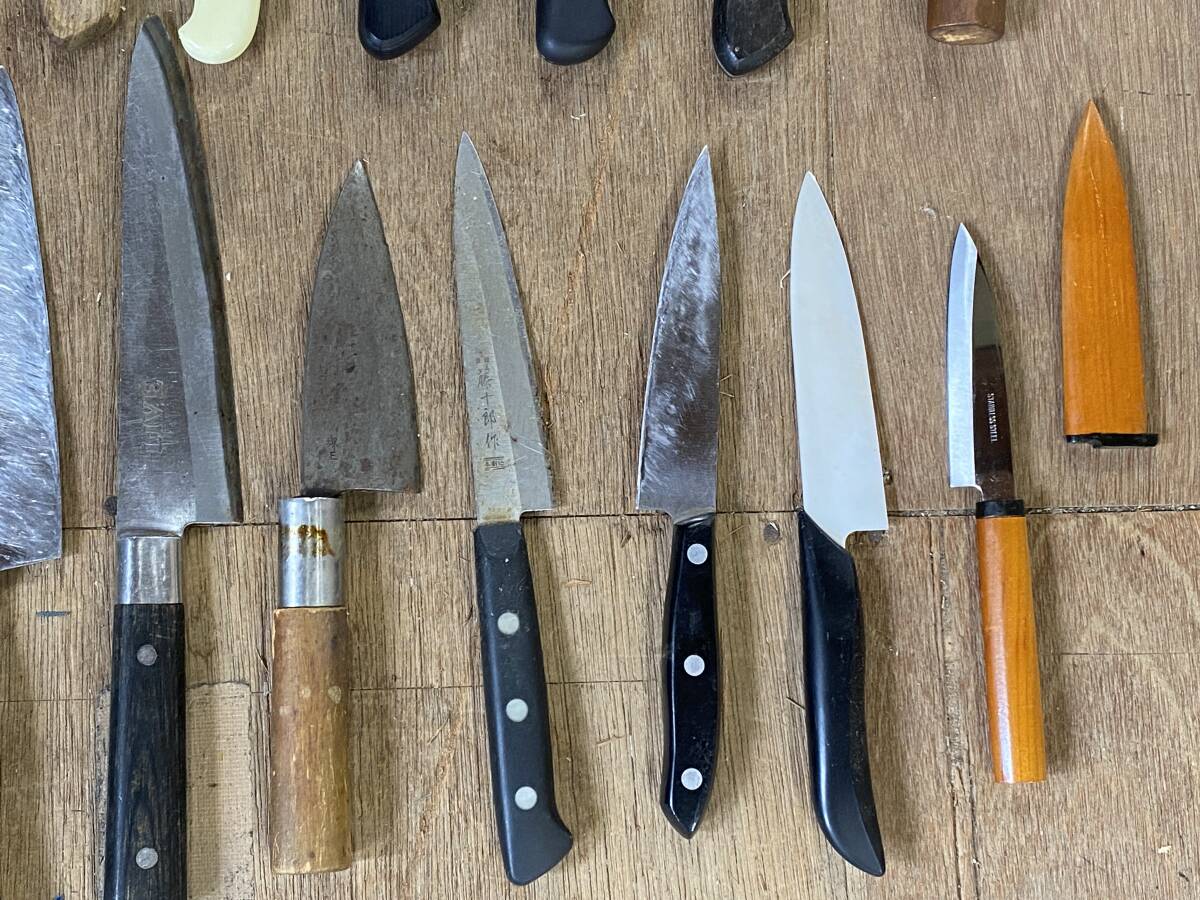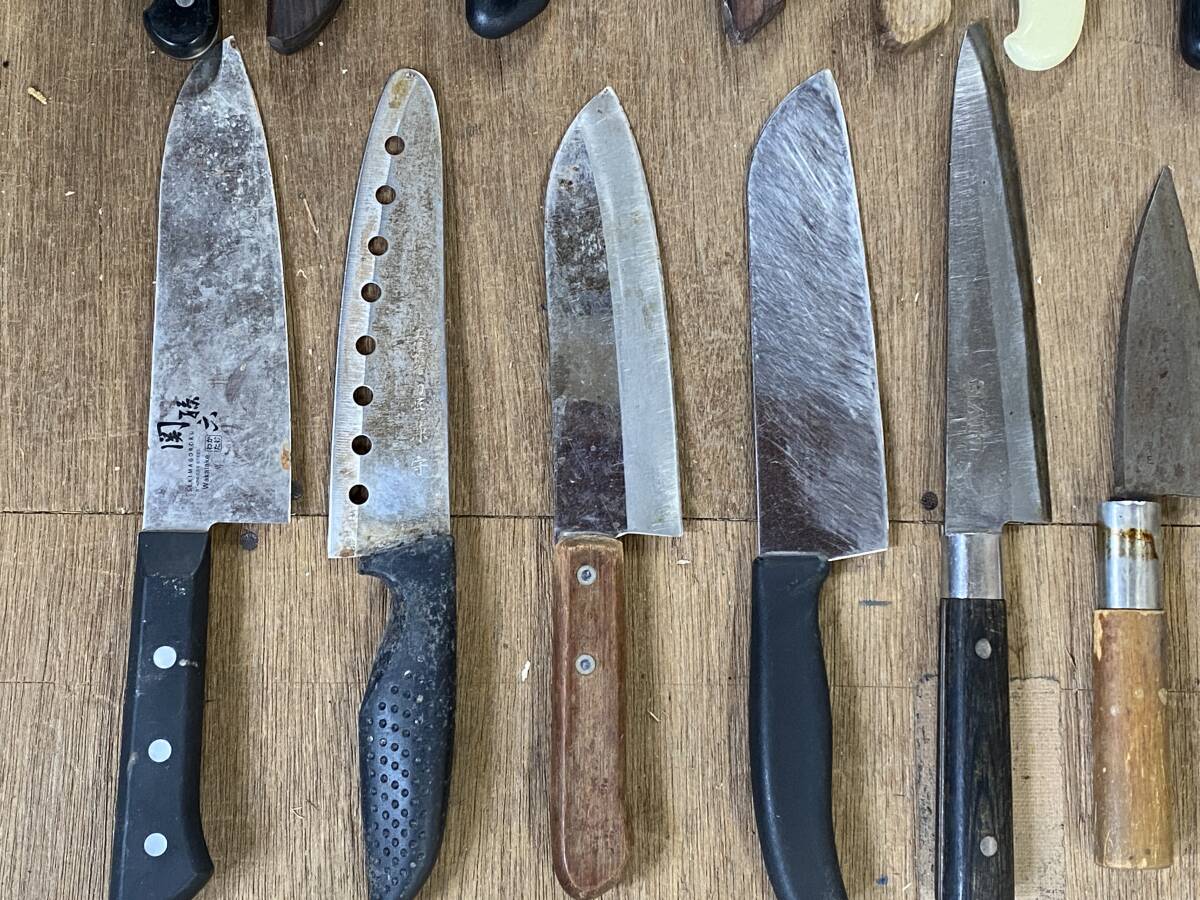 E-726 【同梱不可】980円~ 現状品 包丁まとめ 20点セット 周富輝/秀宗/近景/関孫六/兼守/藤十郎作 等 万能包丁 刃物 ナイフ