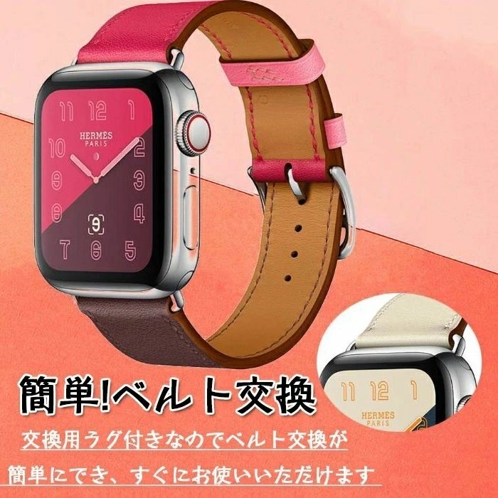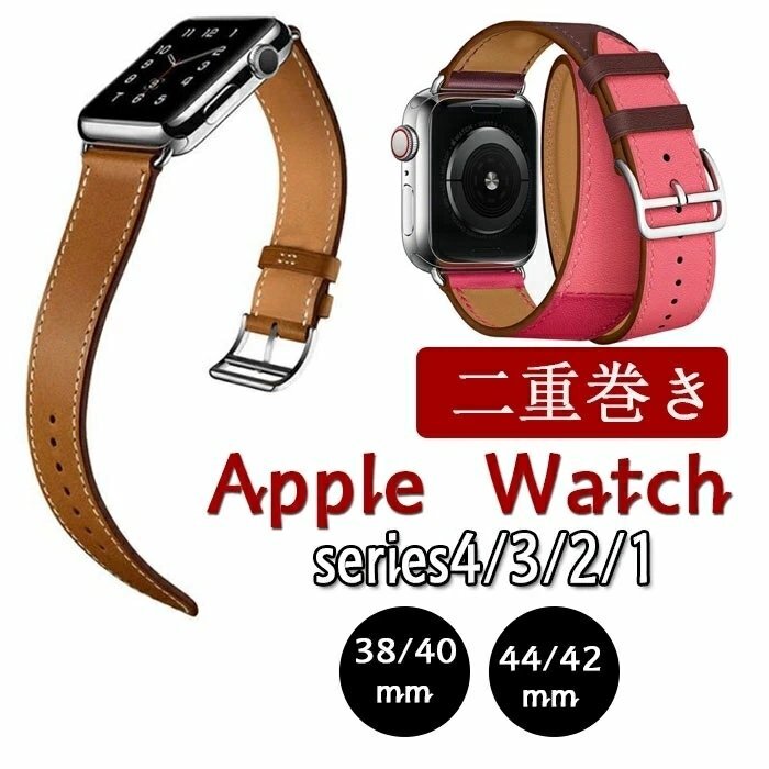 Apple Watch 対応 バンド二重巻き 本革レザーベルト アップルウォッチバンド 本革レザー 交換バンド ラグ付き【マルチカラーB 38MM/40MM】