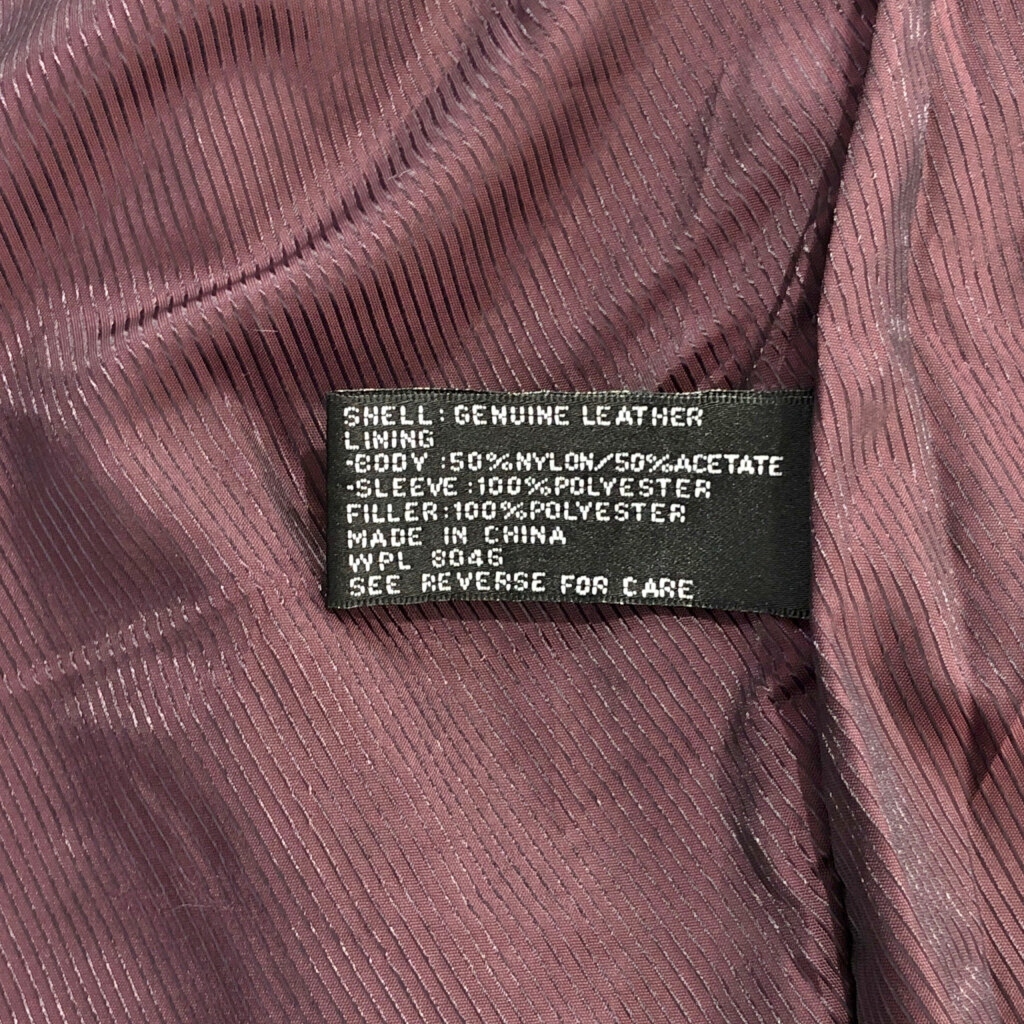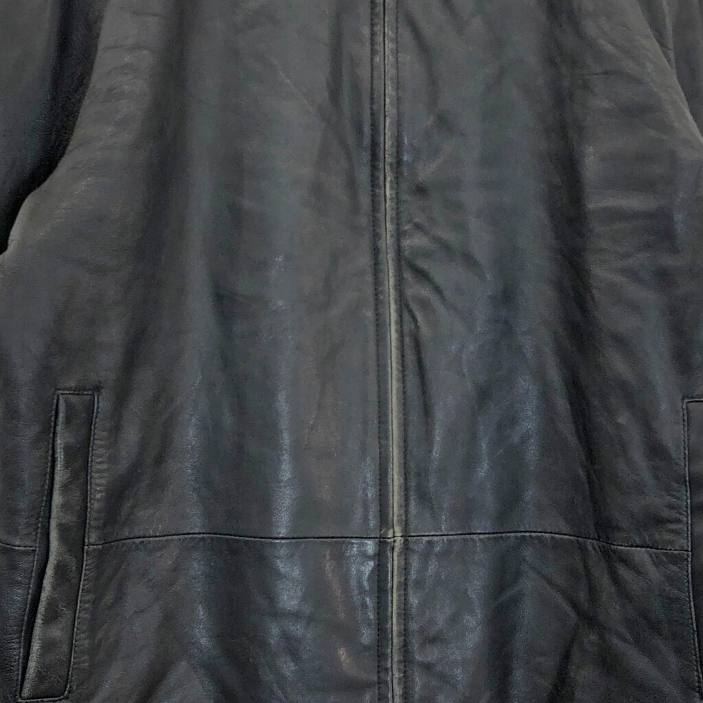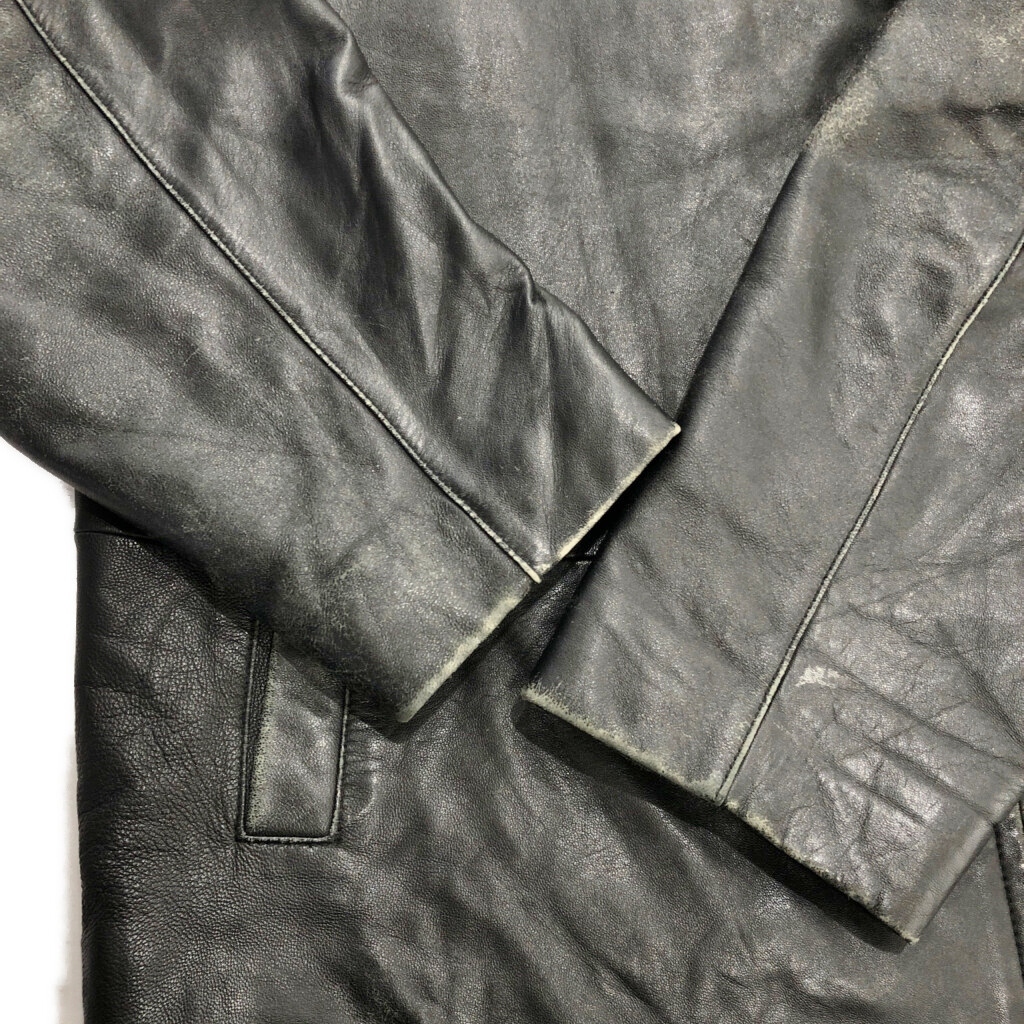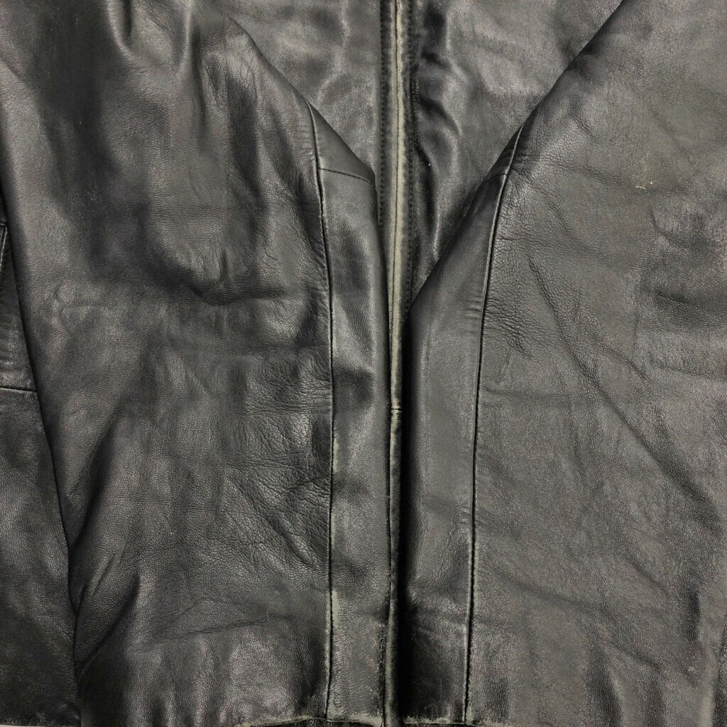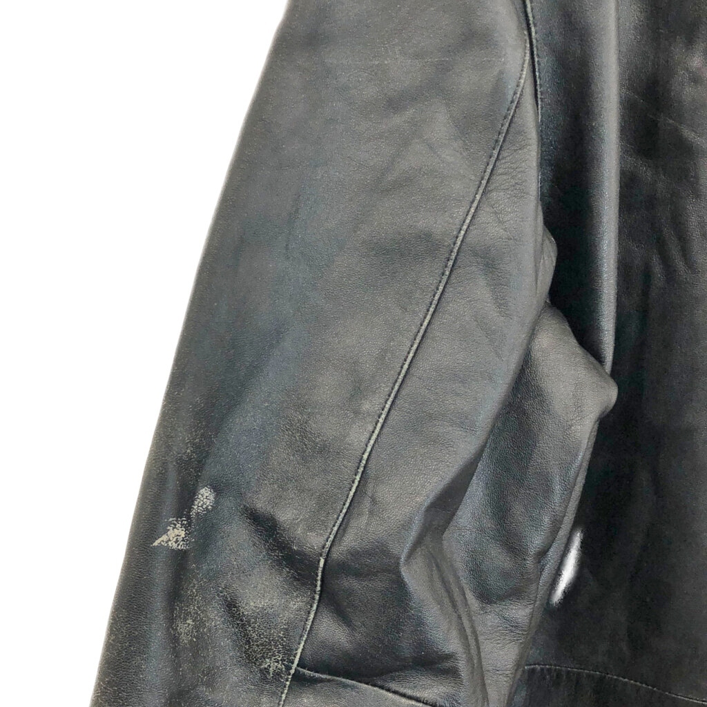 | 【商品管理番号】 V3386 【サイズ】 【実寸サイズ】 肩幅:約51cm 着丈:約68cm 身幅:約63cm 袖丈:約63cm 【主な素材】 表地 : レザー 裏地 : 13848 【色】 ブラック 【仕様】 【状態】 キズ:襟、袖、袖先、胸、腹部、裾 | |||