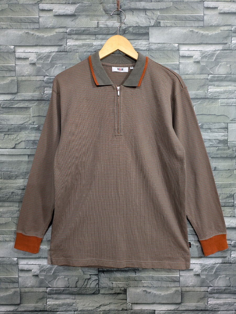 ★送料無料★VAN  長袖  ポロシャツ カットソー ハーフジップ ボーダー柄 トップス メンズ Lサイズ です。 【8】