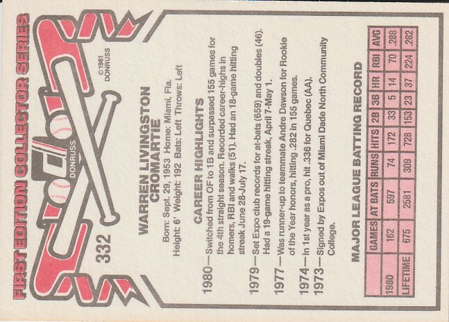 来日外国人 巨人 クロマティ 1981 Donruss 332