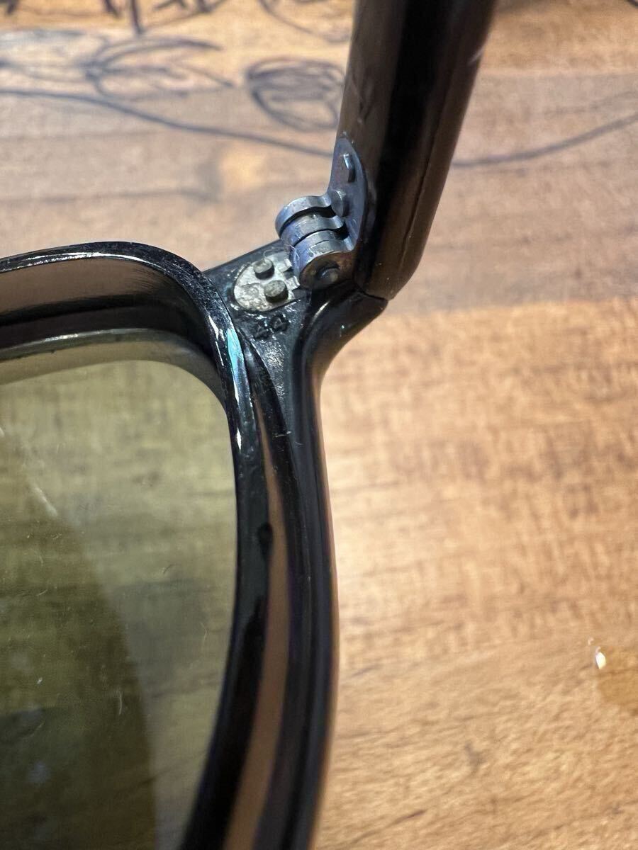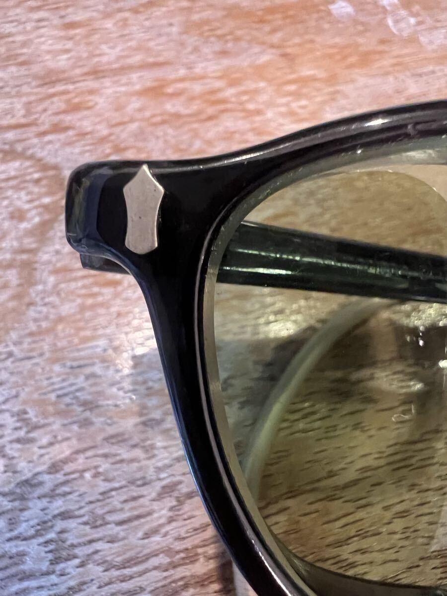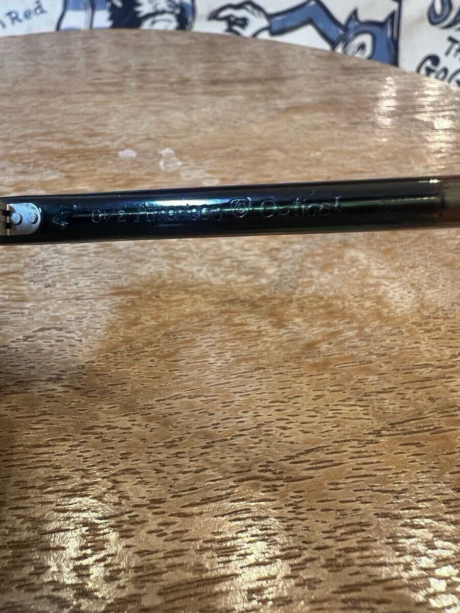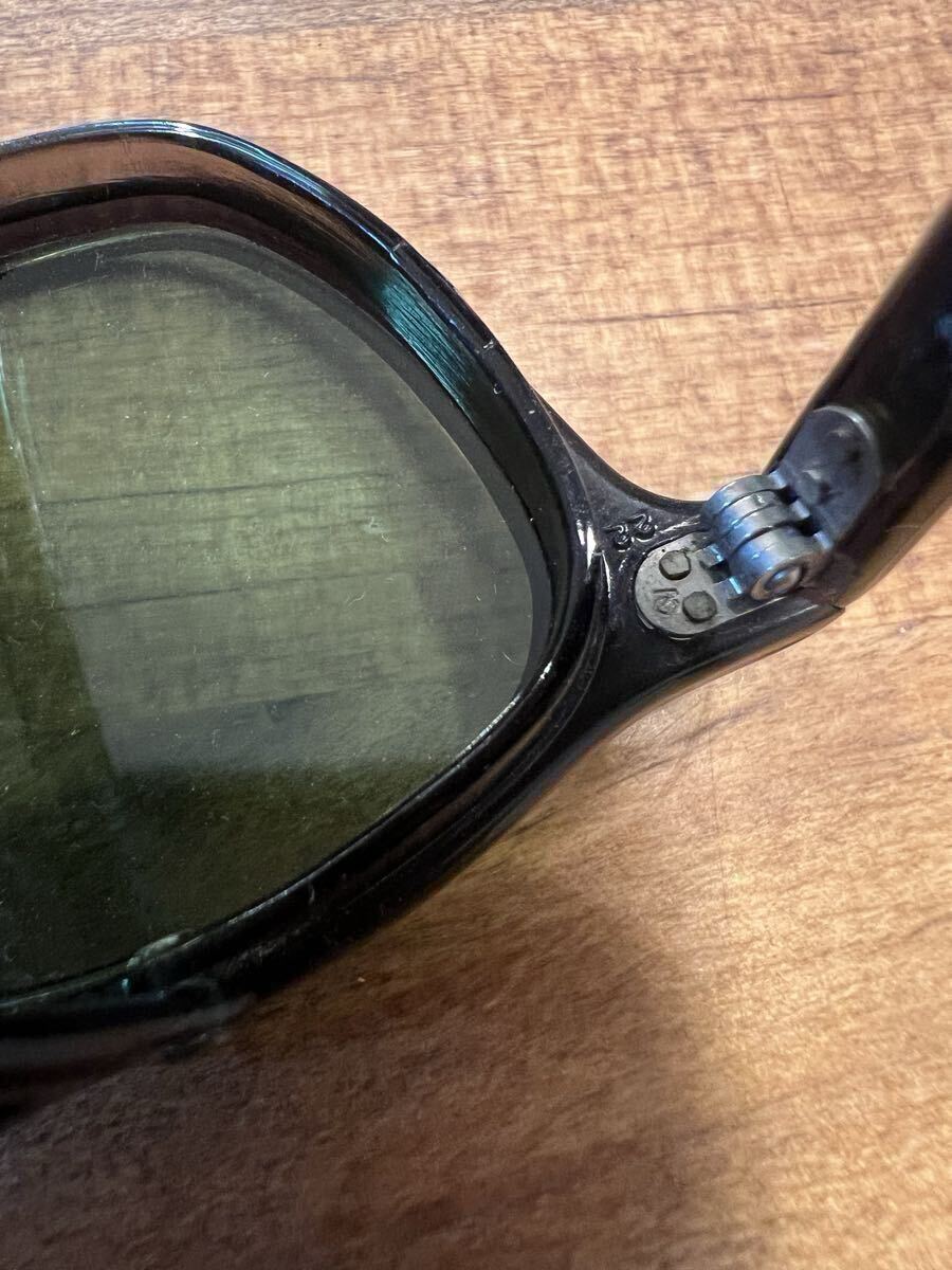 ビンテージのセーフティーグラスです年代は忘れてしまいました。ビンテージですが結構綺麗ですレンズはAOの文字の入ったオリジナルのガラスレンズで目立つ傷はありません。サイズは見づらいですが44-22の刻印あり、10年位前にバイク用に購入しましたが縄手テンプルが地道にストレスでヘルメットを被った状態では着け外しが出来ないのと自分にはサイズが少し小さかったですサイドガードの跡が顔に付いてしまいます、サイドガード無しにしてしまったら大丈夫なのですがこれが格好良くて買ったので外す気にならずで着用頻度低く手放す事にしました。凄く格好良いですよ!欲しい方は是非!