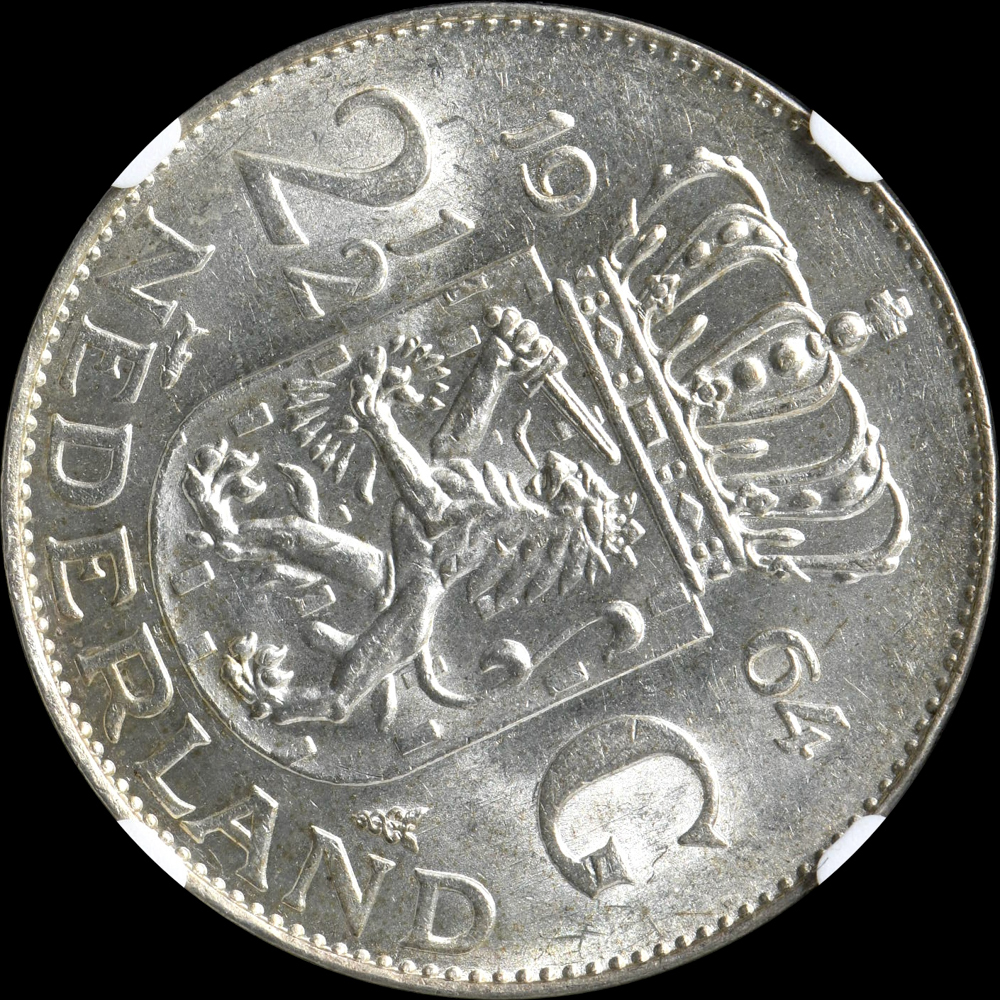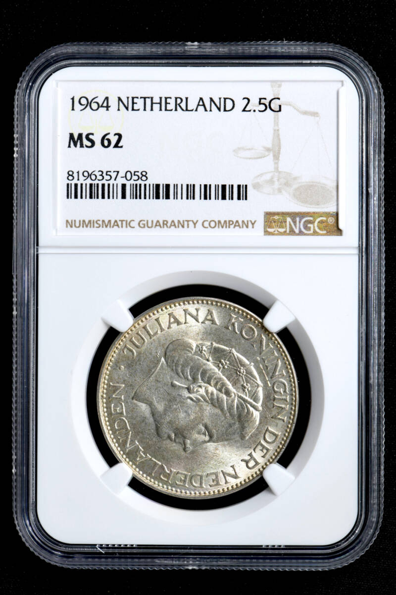 ★日終 【NGC MS62】1964 オランダ 2.5G銀貨 未使用 //世界コイン 古銭 貨幣 硬貨 銀貨 金貨 銅貨【決済期限火曜日】