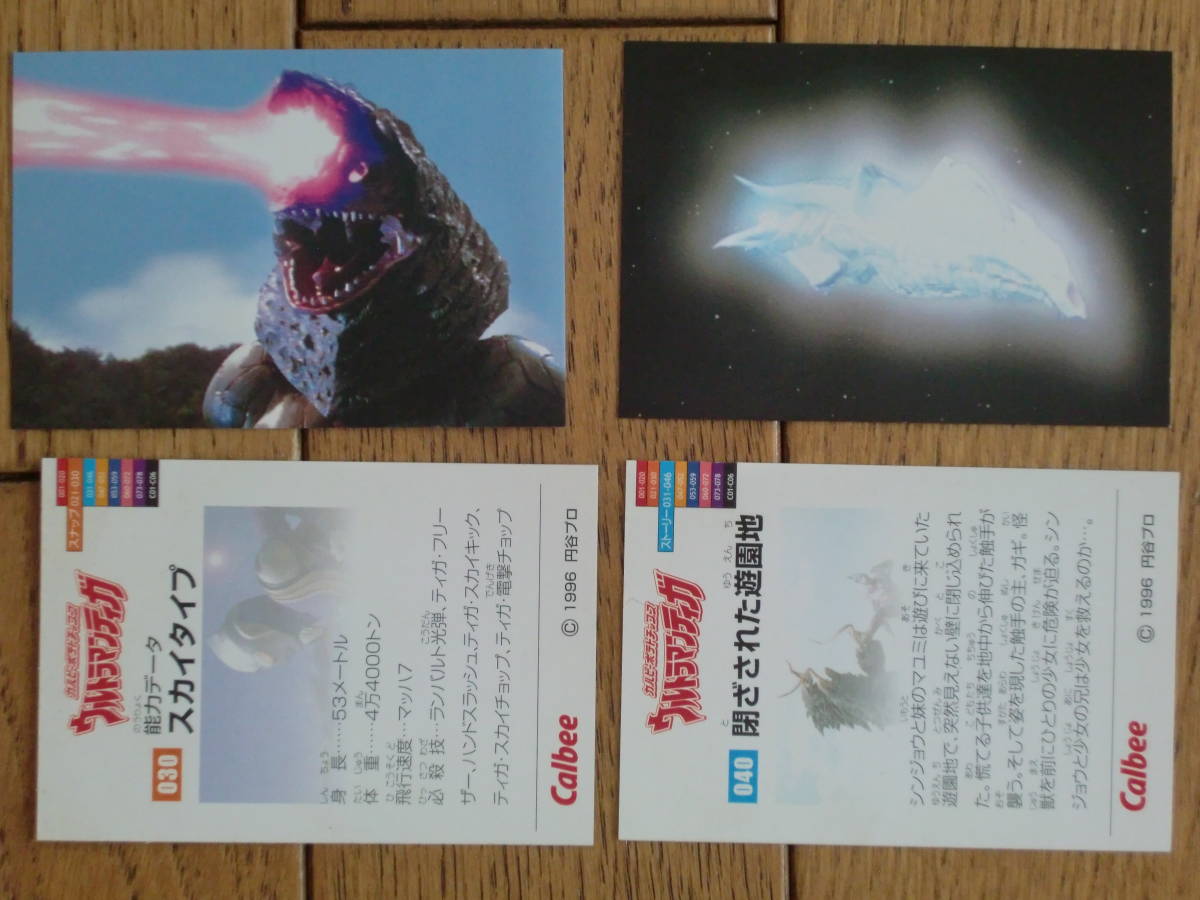 カルビー ポテトチップスのオマケ ウルトラマンティガ カード9種10枚 です。 美品ですが、古いものですのでお写真で現状をご理解いただける方のみ入札いただき、NC・NRでお願いいたします。 尚、迅速な対応を心がけてはおりますが、仕事の都合で、お支払い終了後、発送まで若干のお時間を頂戴する場合がありますのでご了承下さい。 又、深夜と平日の昼間は連絡が出来ない可能性がありますので、併せてご了承ください。 他にも「おもちゃホビー」を色々出品しておりますので、よろしければご覧下さい。