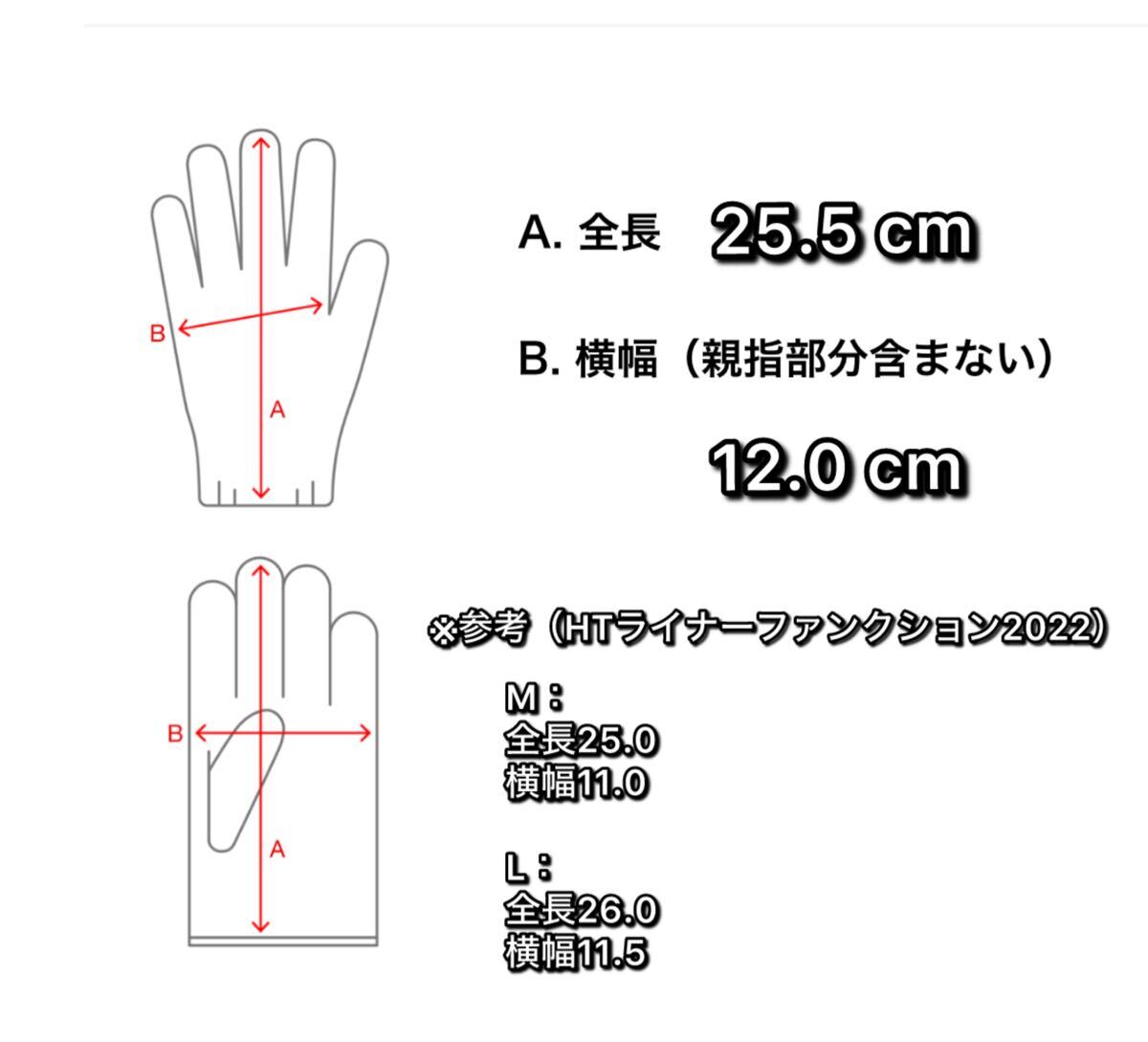 178cm、70kg 男性、ヒートテックライナーファンクショングラブ2022年モデルMサイズをジャストで着用している手に対して